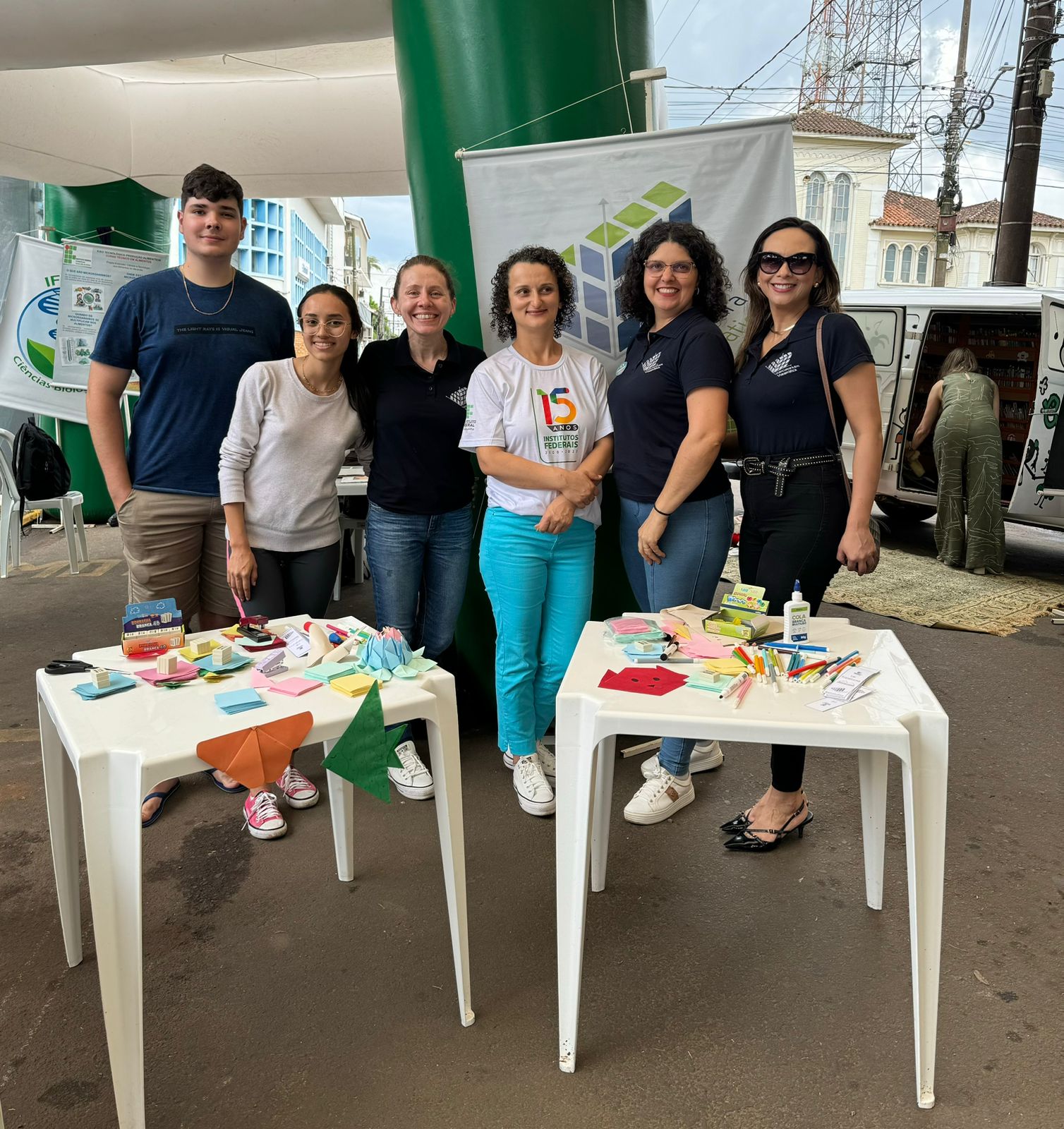 Alunos/as e docentes do curso de Licenciatura em Matemática participaram da Feria do Livro de Júlio de Castilhos ministrando uma oficina de origami para as escolas presentes no evento no dia 23 de outubro. A professora Tanísia Foletto ressalta que a oficina foi um sucesso, uma vez que cada criança fez seu próprio marcador de livro.