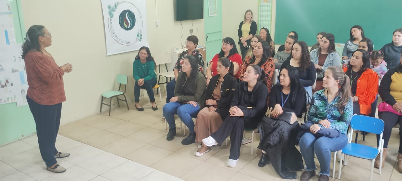 A primeira ocorreu na Escola Municipal São Francisco de Assis, na área rural do município, a fim de atender demandas do Assentamento Alvorada. Contou com a participação de 26 pessoas, entre mães da comunidade e servidoras da escola. A ação contou com a apresentação do LAPICS, das práticas integrativas e complementares (PICS), das parceiras e guardiãs do Recanto Florescer, em Itaara, e a realização da dinâmica de Terapia Comunitária Integrativa denominada Cuidando o Cuidador.