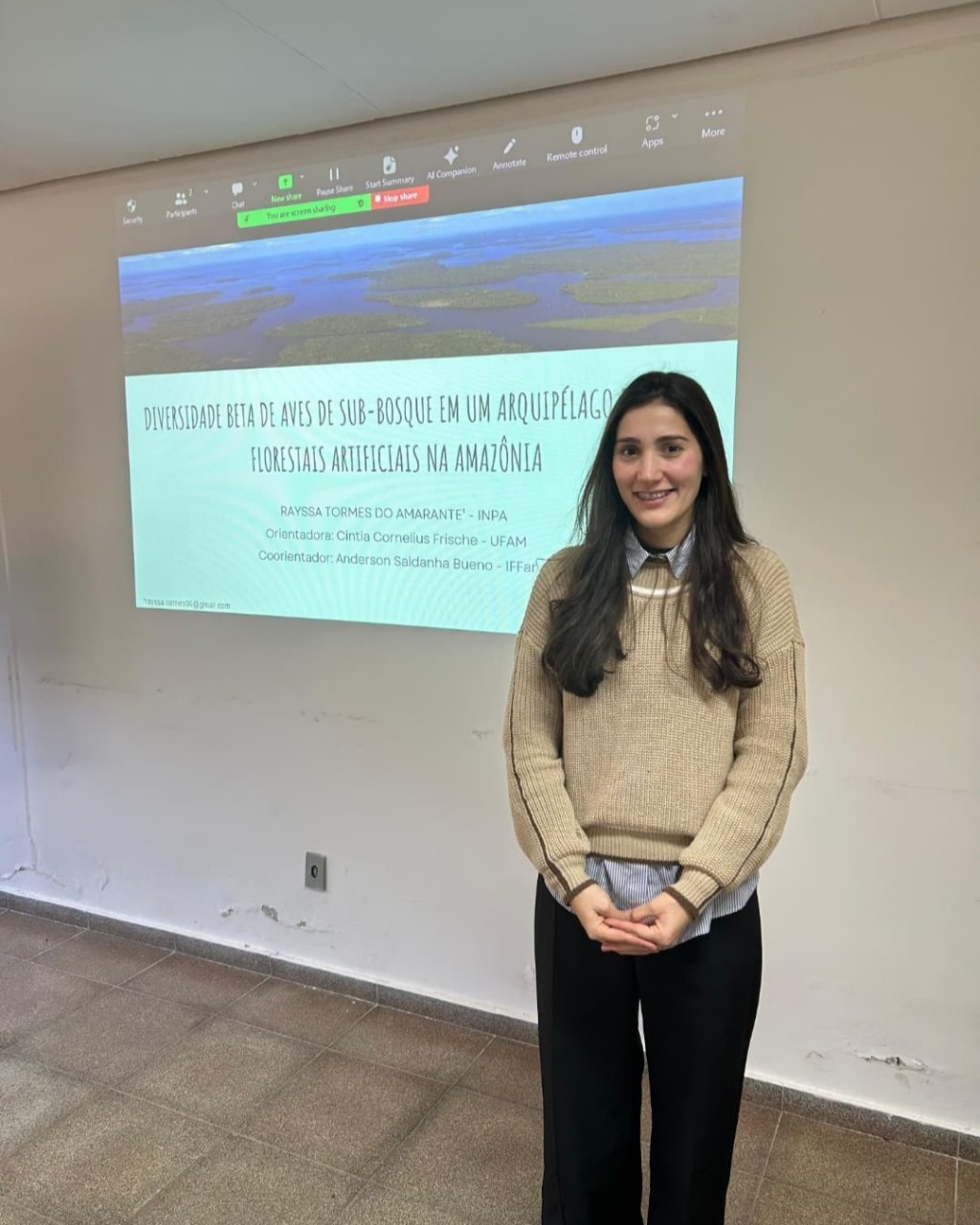 Rayssa Tormes do Amarante, egressa do curso de Licenciatura em Ciências Biológicas do IFFar – Campus Júlio de Castilhos e da especialização em Biodiversidade e Conservação do IFFar – Campus Panambi, defendeu no dia 25 de junho de 2025 sua dissertação de mestrado intitulada “Diversidade beta de aves de sub-bosque em um arquipélago de ilhas florestais artificiais na Amazônia”.