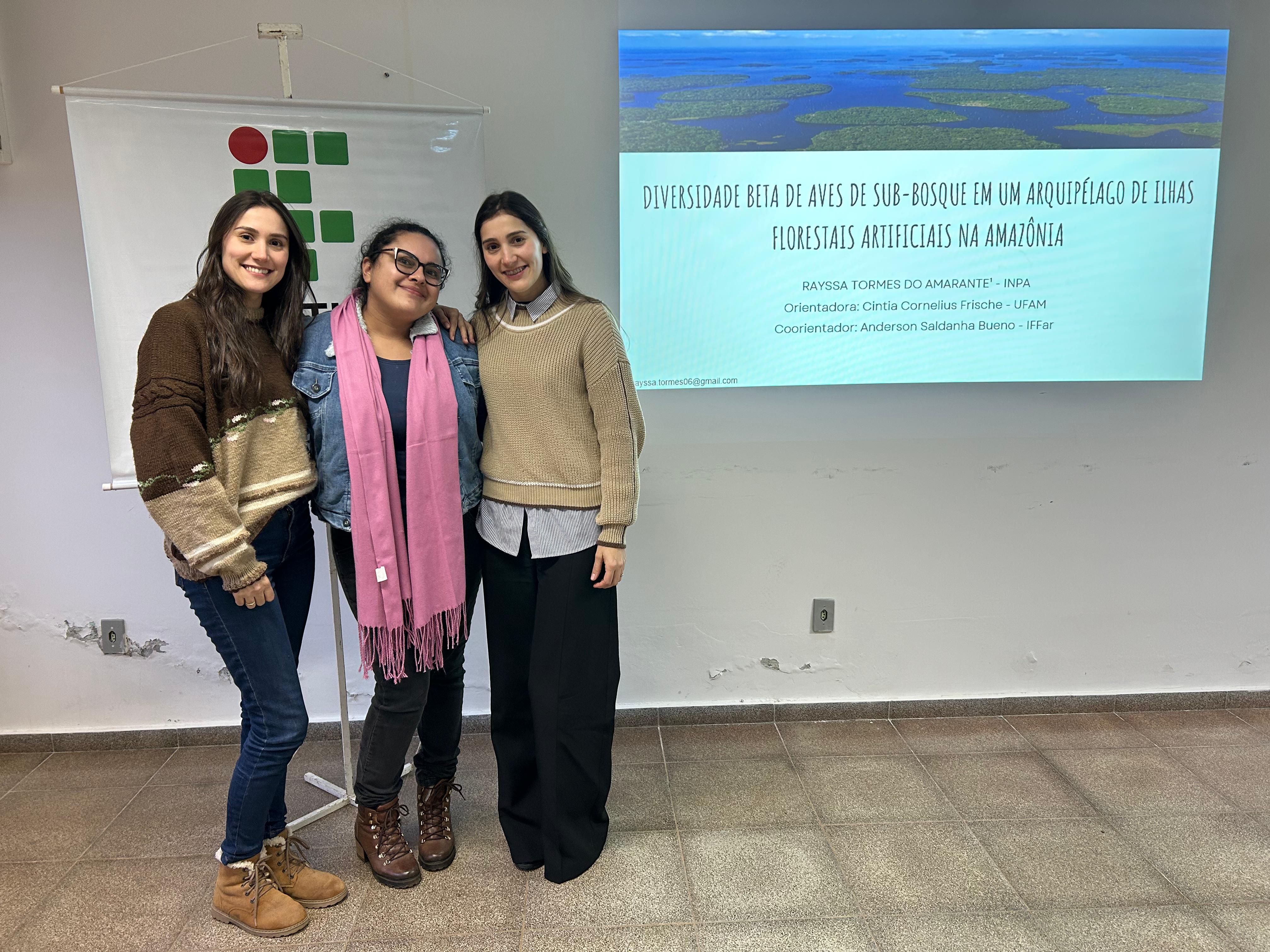Ao longo da pesquisa, Rayssa registrou mais de 1.600 aves de sub-bosque em 32 ilhas artificiais e 5 locais em floresta contínua. Além dela, participaram do trabalho de campo na Amazônia Ivana Cardoso, egressa do IFFar-JC, e Felipe de Brum Fernandes, discente da Licenciatura em Ciências Biológicas. O estudo, orientado pela Dra. Cíntia Cornelius (Universidade Federal do Amazonas – UFAM) e coorientado pelo Dr. Anderson Saldanha Bueno (IFFar JC), investigou a influência da área e do isolamento das ilhas sobre a diversidade beta de espécies e de funções ecológicas dessas aves. A pesquisa contou com parcerias com instituições nacionais e internacionais, envelvendo INPA, UFAM, IFFar e a University of East Anglia (Reino Unido), além de apoio financeiro da British Ecological Society (Sociedade Ecológica Britânica).