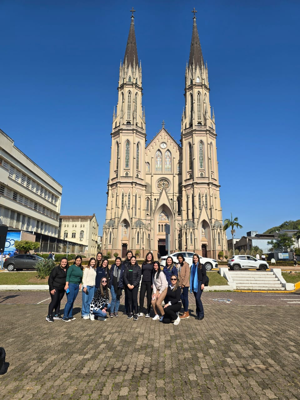 A professora Franciane relata que ainda fez parte da viagem uma visita à Catedral São João Batista, ponto de visitação da cidade, além de um passeio no Parque da Gruta onde foi possível desfrutar de uma bela paisagem natural e histórica, que encanta. São atrações do parque: gruta paleontológica, trilhas ecológicas, lagos, cascata, etc. Ela destaca que ao final da jornada os/as estudantes relataram satisfação com a experiência, reforçando o papel da visita técnica como estratégia de ensino-aprendizagem, alinhada aos princípios da extensão e formação cidadã promovidos pelo IFFar.