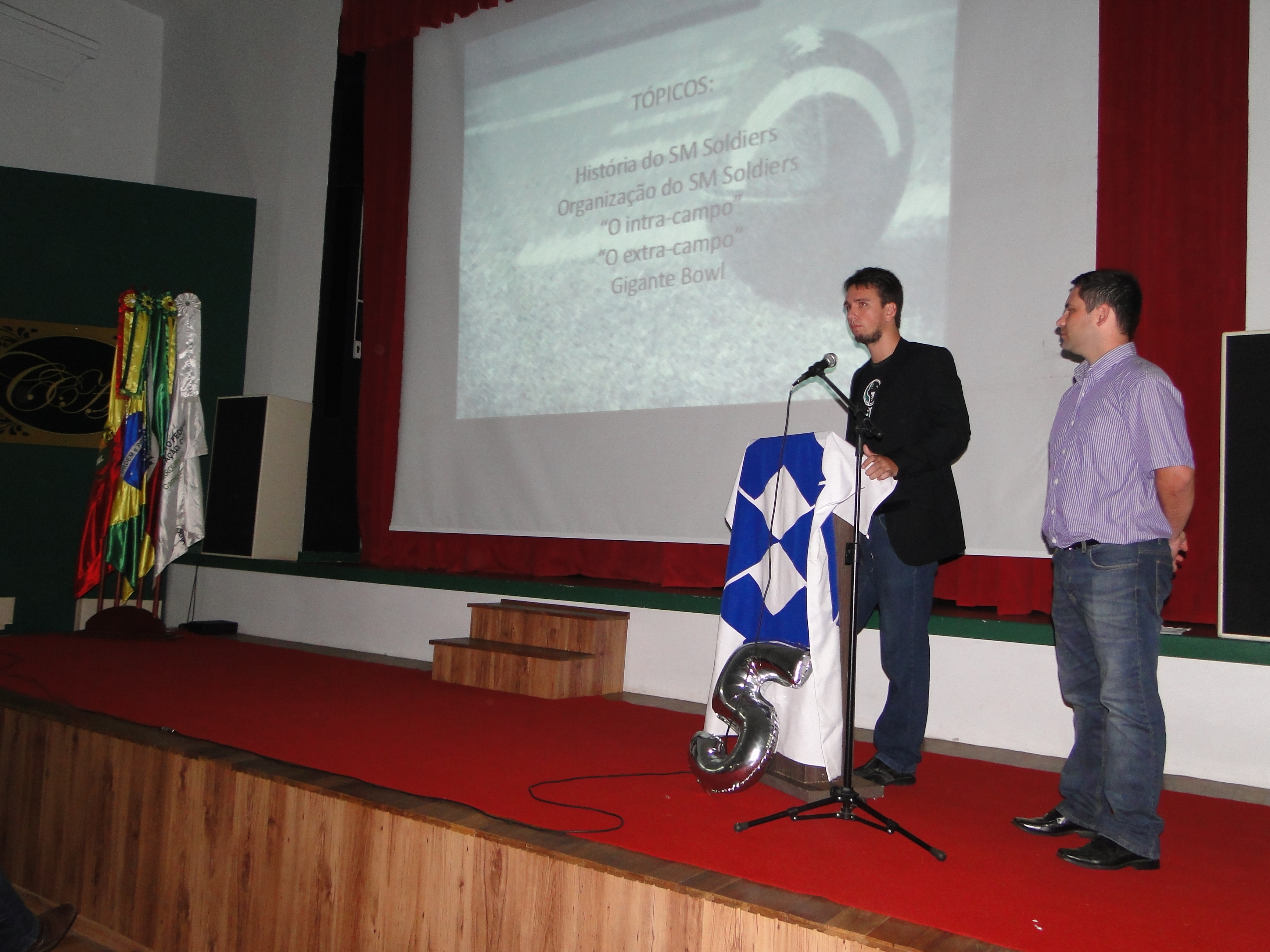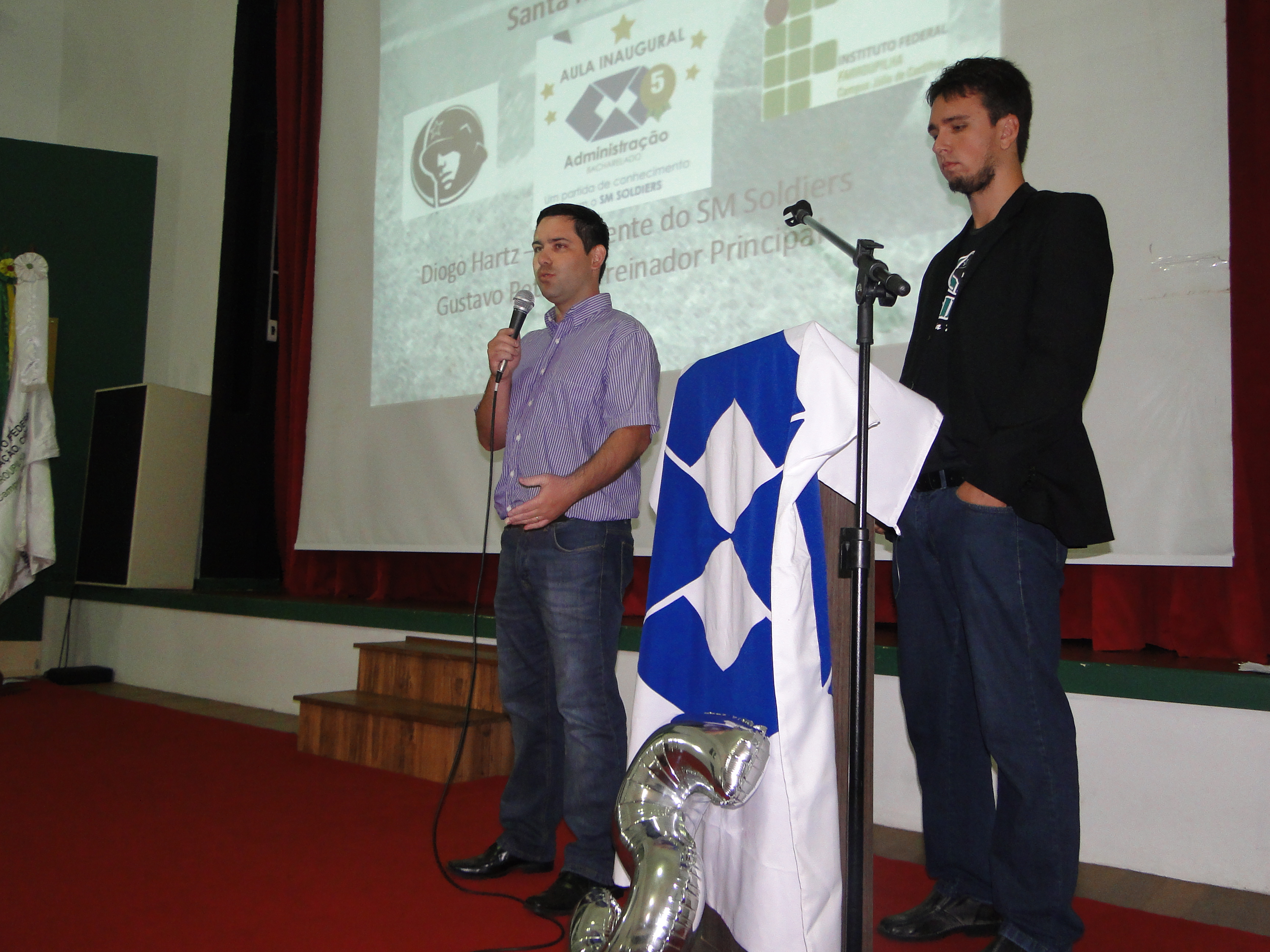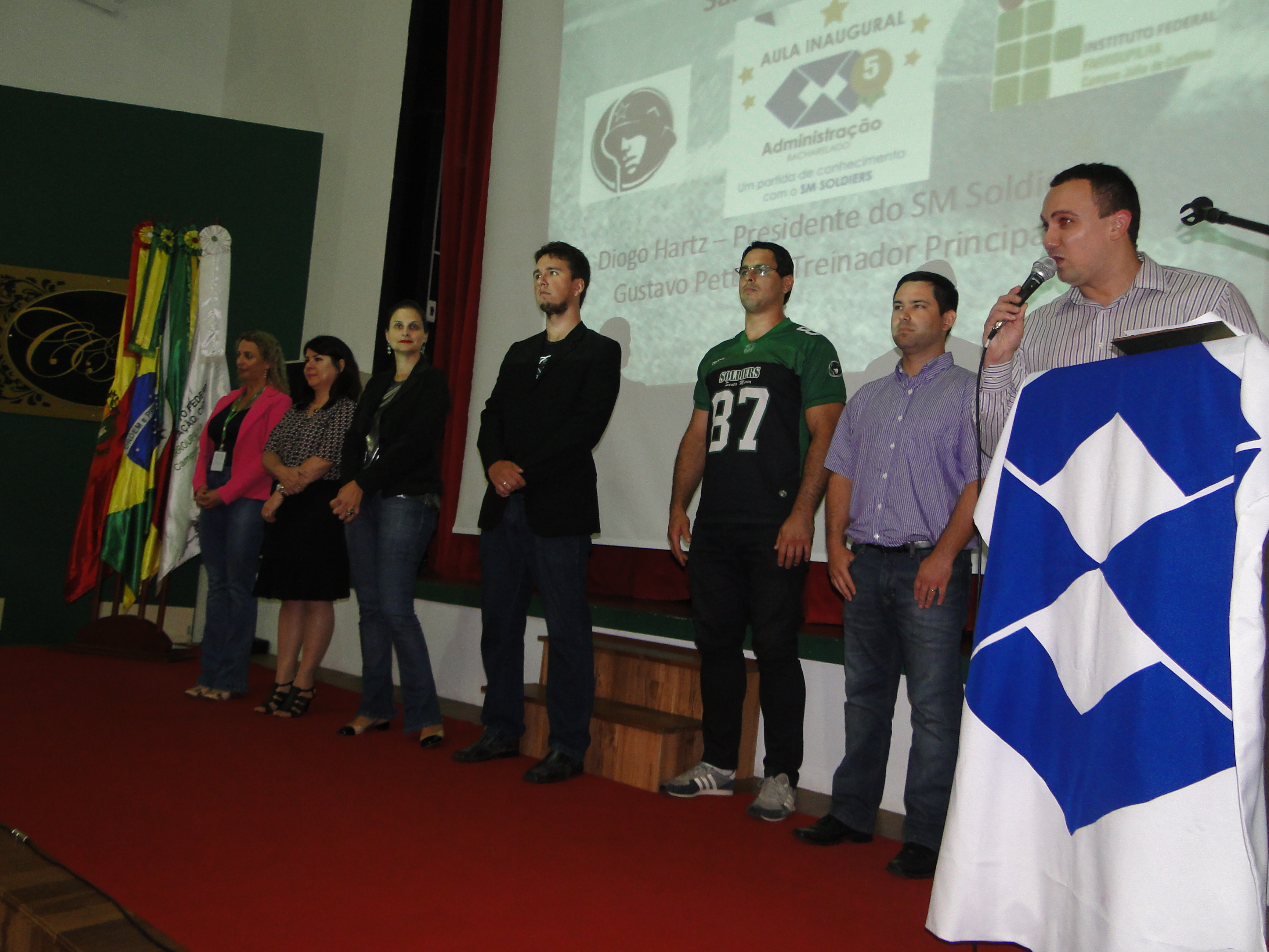 Na noite de quarta-feira, 05 de abril, aconteceu no Centro Cultural Álvaro Pinto a aula inaugural do curso de Administração do campus Júlio de Castilhos. Os convidados da noite foram Diogo Hartz, presidente do Santa Maria Soldiers e Gustavo Petter, Head Coath (técnico principal) do SM Soldiers, eles vieram contar a experiência de montar um time de futebol americano no interior do Rio Grande do Sul. O objetivo principal da aula foi mostrar a importância da equipe aos acadêmicos da administração e ao público presente.