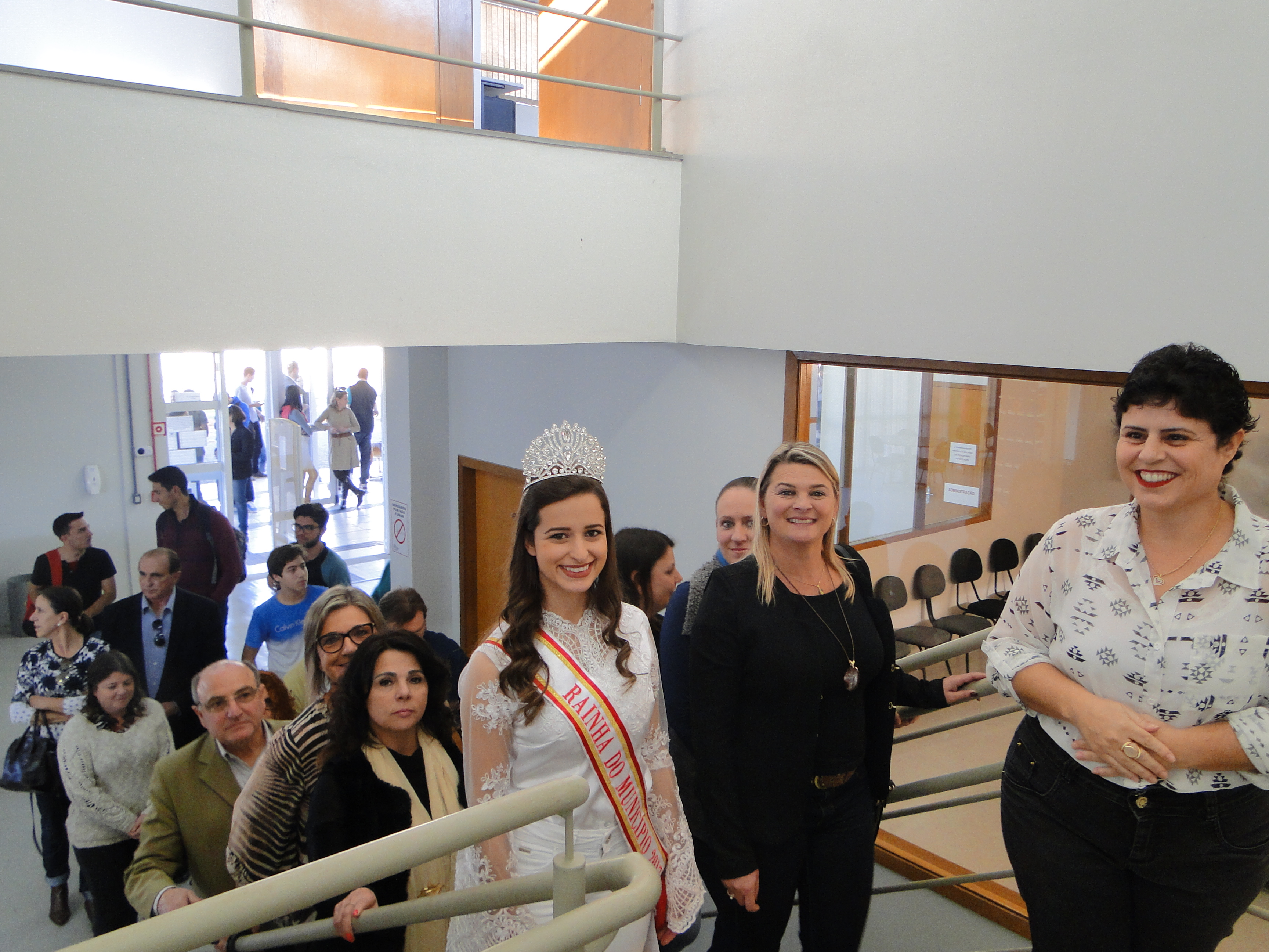 Os presentes fizeram uma visita para conhecer a biblioteca, guiados pela bibliotecária Joice Nara Rosa Silva. A Biblioteca do Instituto Federal Farroupilha - Campus Júlio de Castilhos tem por objetivo apoiar as atividades de ensino-aprendizagem, técnico-científico e cultural. Auxiliar e orientar os alunos nas atividades pedagógicas e colaborar com o desenvolvimento intelectual da comunidade acadêmica, prestando assistência à pesquisa, a organização e a preservação do acervo e da produção intelectual de seus usuários. Atualmente a biblioteca possui um acervo bibliográfico de aproximadamente 15537 exemplares e 3166 títulos. Possuímos 6 computadores com acesso a internet para pesquisa, mesas de estudos em grupo, 8 salas para estudo individual, 1sala de processamento técnico, 1 sala para acervo controlado, 1 sala de vídeo-conferência e 1 sala de biblioteca virtual com 40 computadores.