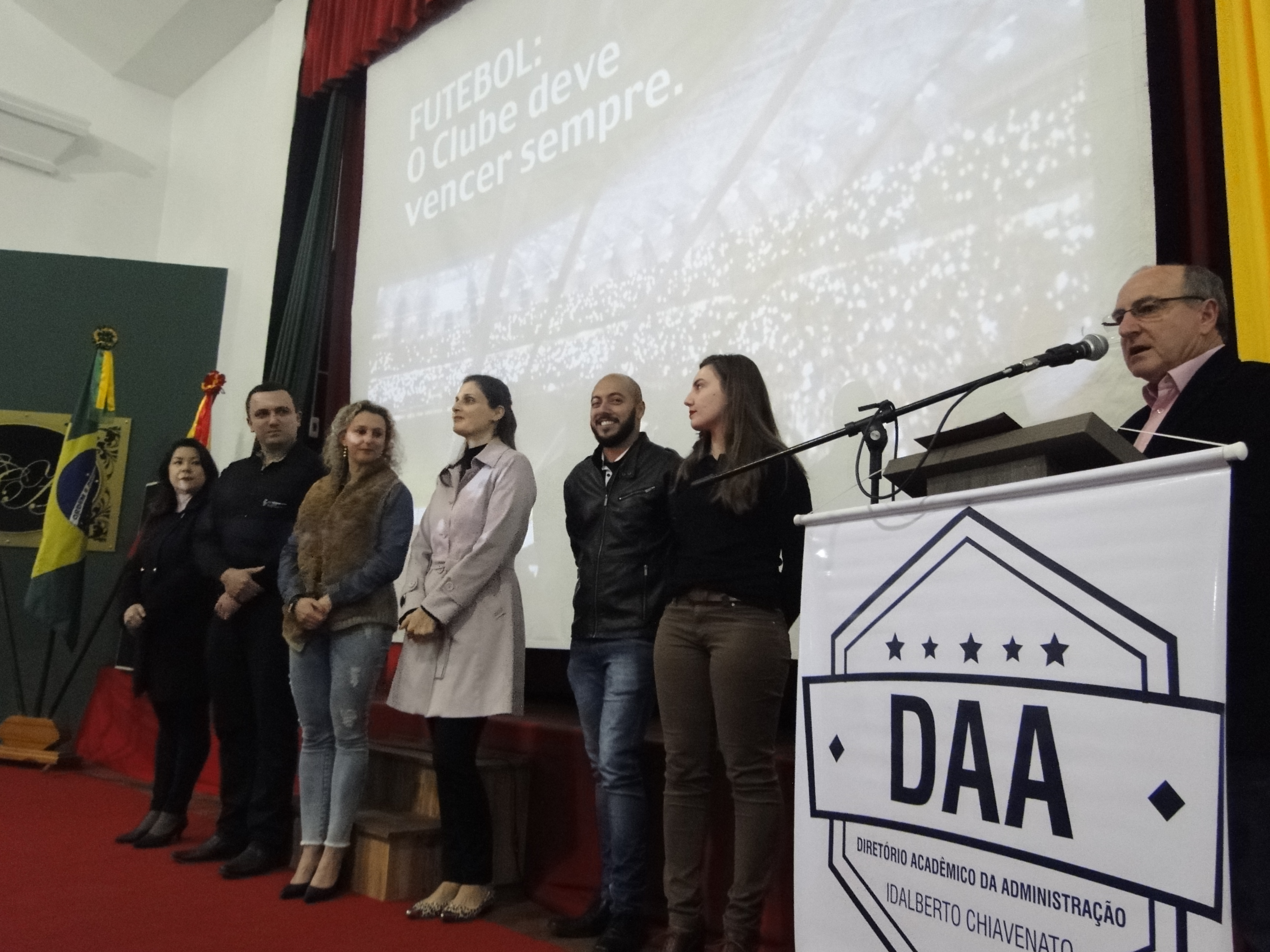 A palestra da noite foi com o consultor da Federação Gaúcha de Futebol na área de comunicação e relacionamento com o torcedor, Alexandre Limeira, que falou sobre "Futebol, o time deve vencer sempre" . Destacou a importância do planejamento e da eficiência do marketing.