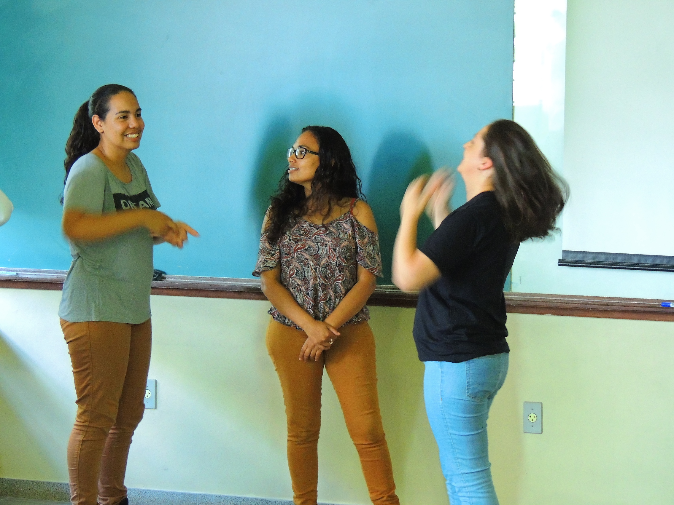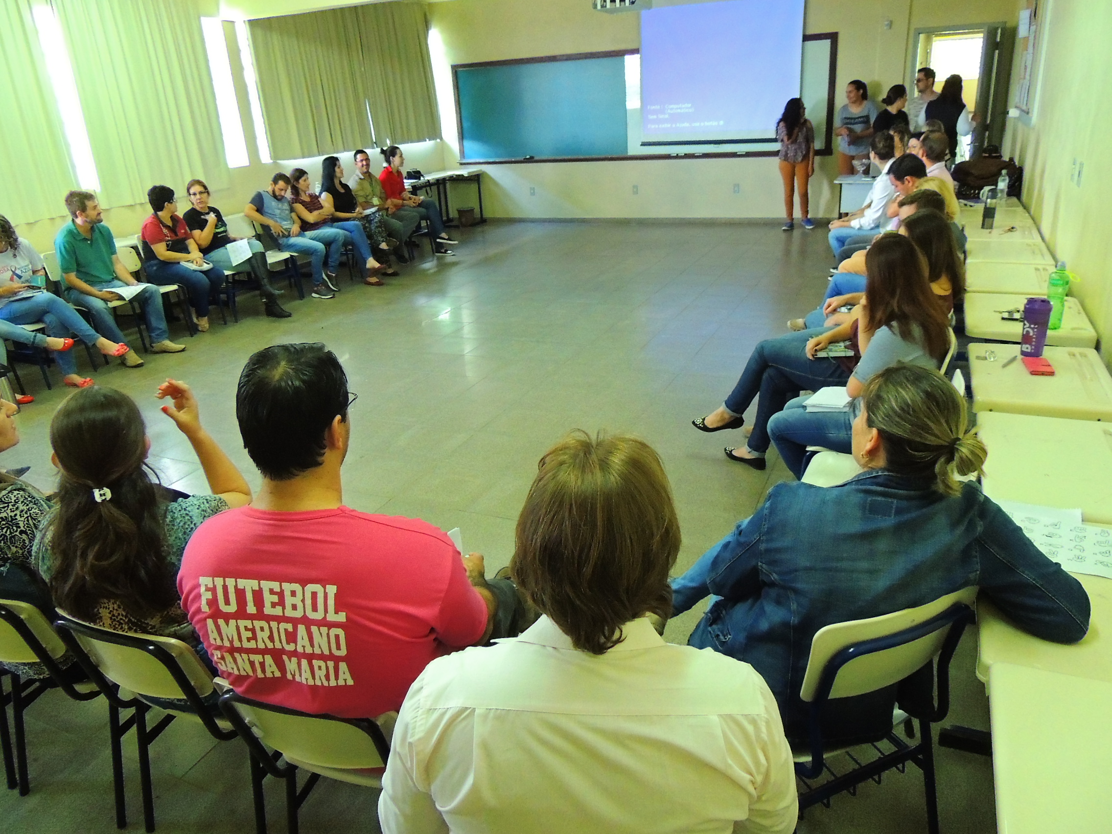 Promover ações articuladas com a Coordenação de Ações Inclusivas divulgando atividades a servidores e alunos e capacitar os docentes e técnicos-admiistrativos em libras e metodologias para alunos com necessidades de atendimento especializado são alguns dos objetivos do Projeto " "Repensando o ensino e a Aprendizagem: Planejamento, Metodologia e Avaliações" . Nesse contexto está acontecendo a capacitação em libras para os servidores do Campus. O curso é ministrado pelas docentes, de Libras Lucinara Correa e de Atendimento Educacional Especializado, Eliane Porto e as estudantes Surdas dos cursos técnicos integrados Erika Cardoso e Lara Pereira.