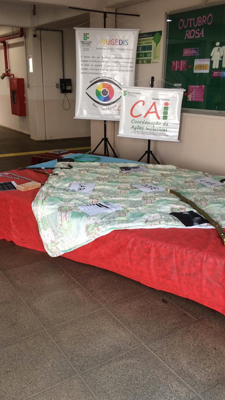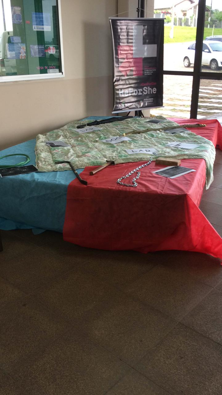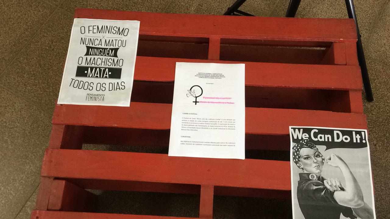 Em alusão às datas, foi organizada uma intervenção no hall de entrada do Campus a fim de sensibilizar a comunidade acadêmica sobre essas questões e também reforçar o convite para participação do festival de curtas intitulado “Minuto pela Não Violência à Mulher”, promovido pela Coordenações de Ações Inclusivas do IFFar, Núcleos de Gênero e Diversidade Sexual (Nugedis) e do Comitê Institucional do Movimento Eles por Elas (HeForShe).