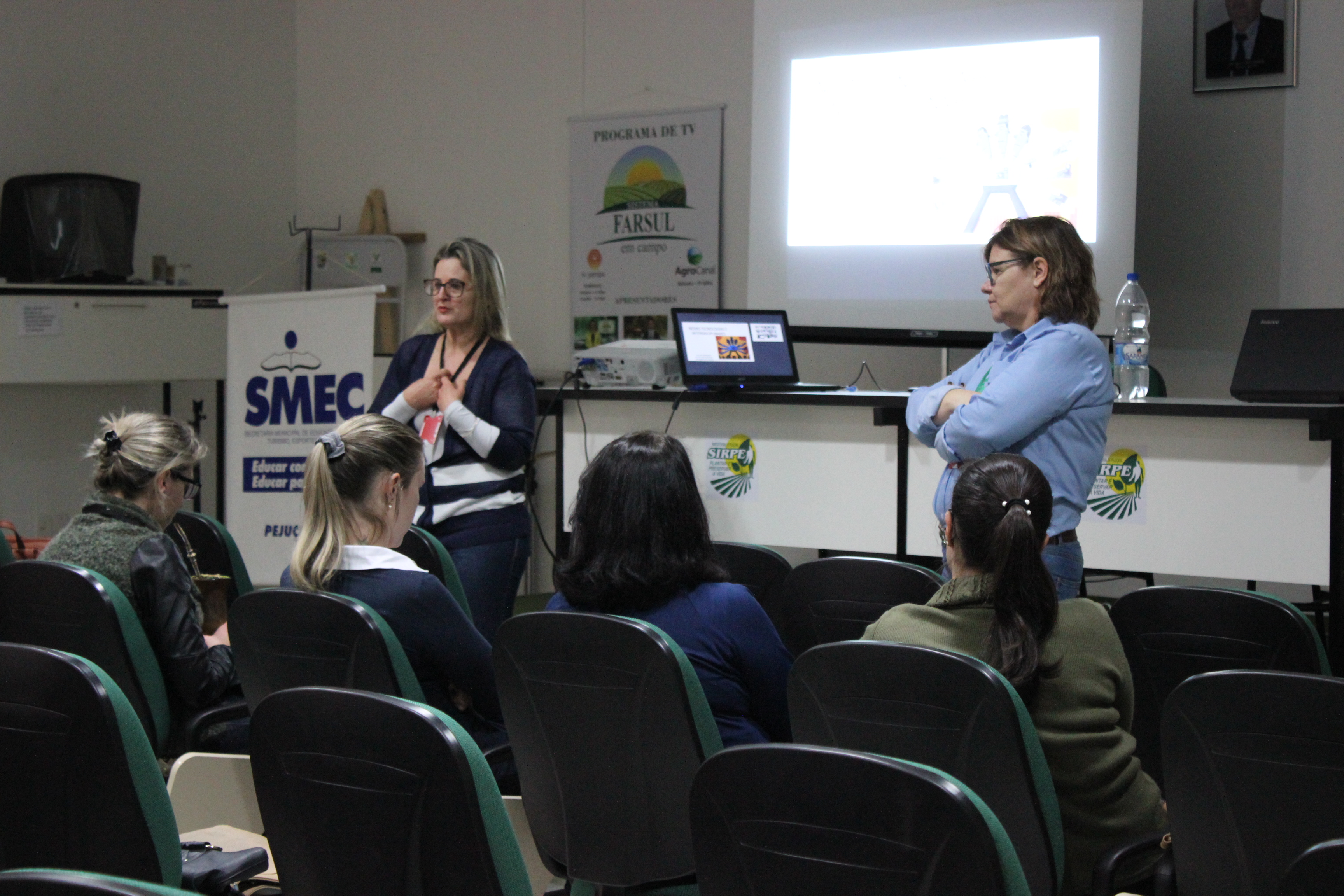 Na tarde da terça-feira, 28 de Junho, as professoras do Campus Panambi do Instituto Federal Farroupilha, Sirlei Rigodanzo e Sandra Nonenmacher, realizaram uma palestra e mediaram um debate sobre “As Novas Tecnologias e Interdisciplinaridade” para os professores dos anos iniciais e finais do município de Pejuçara.