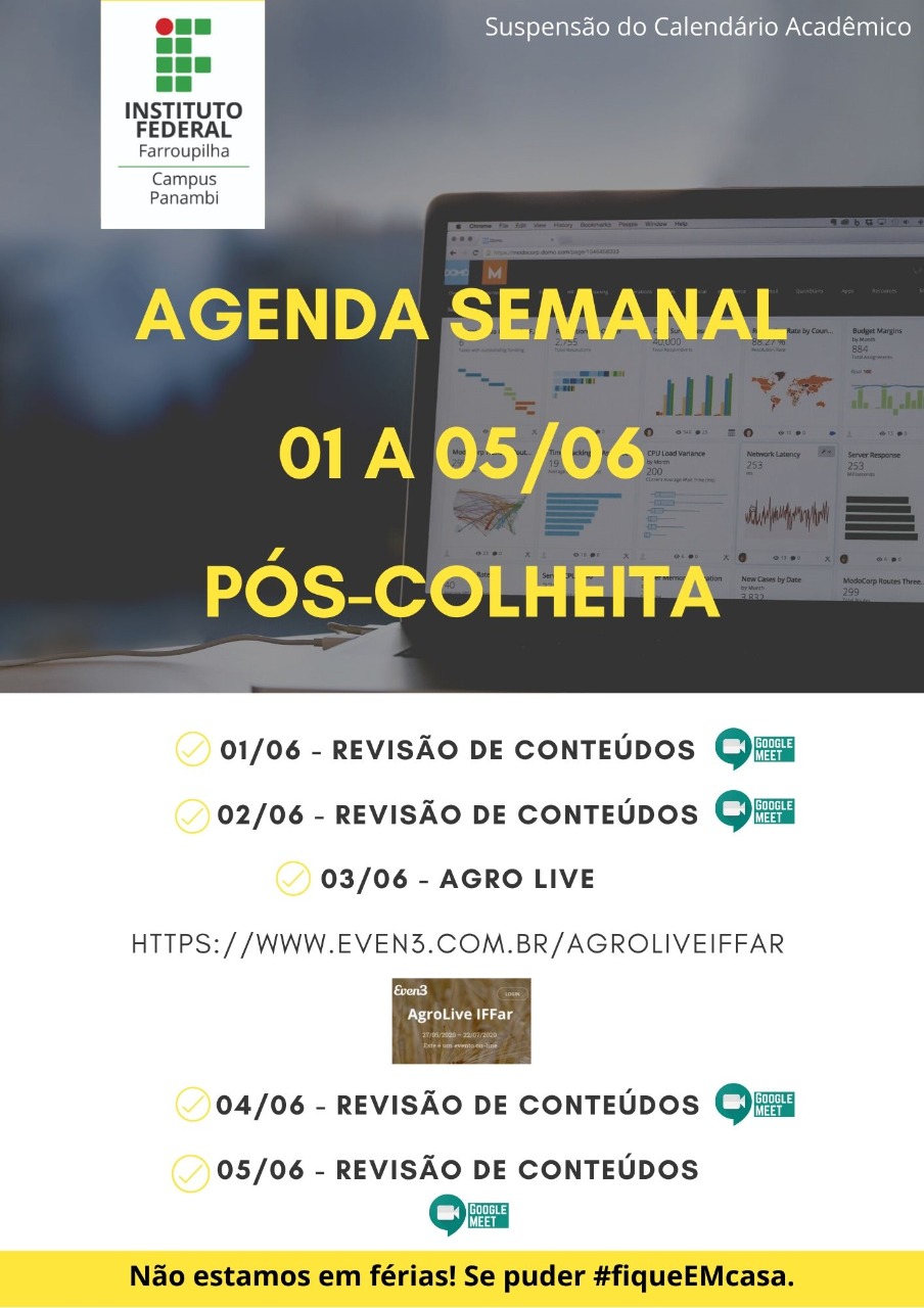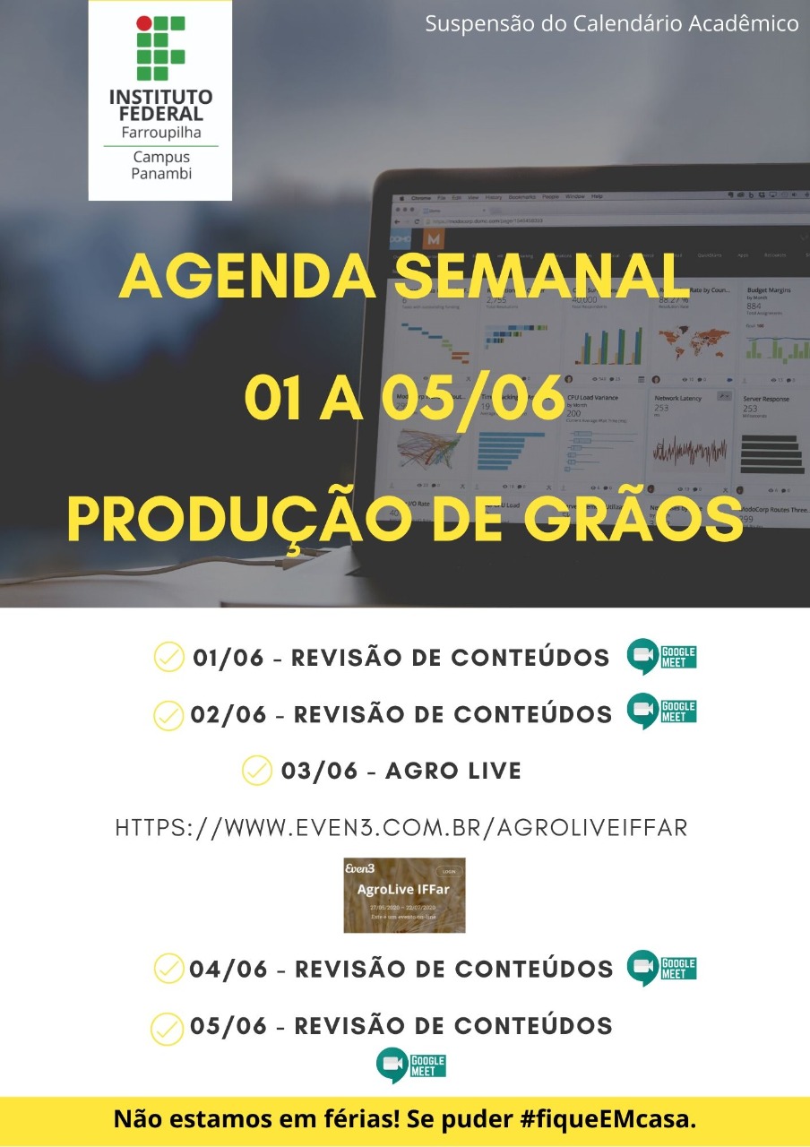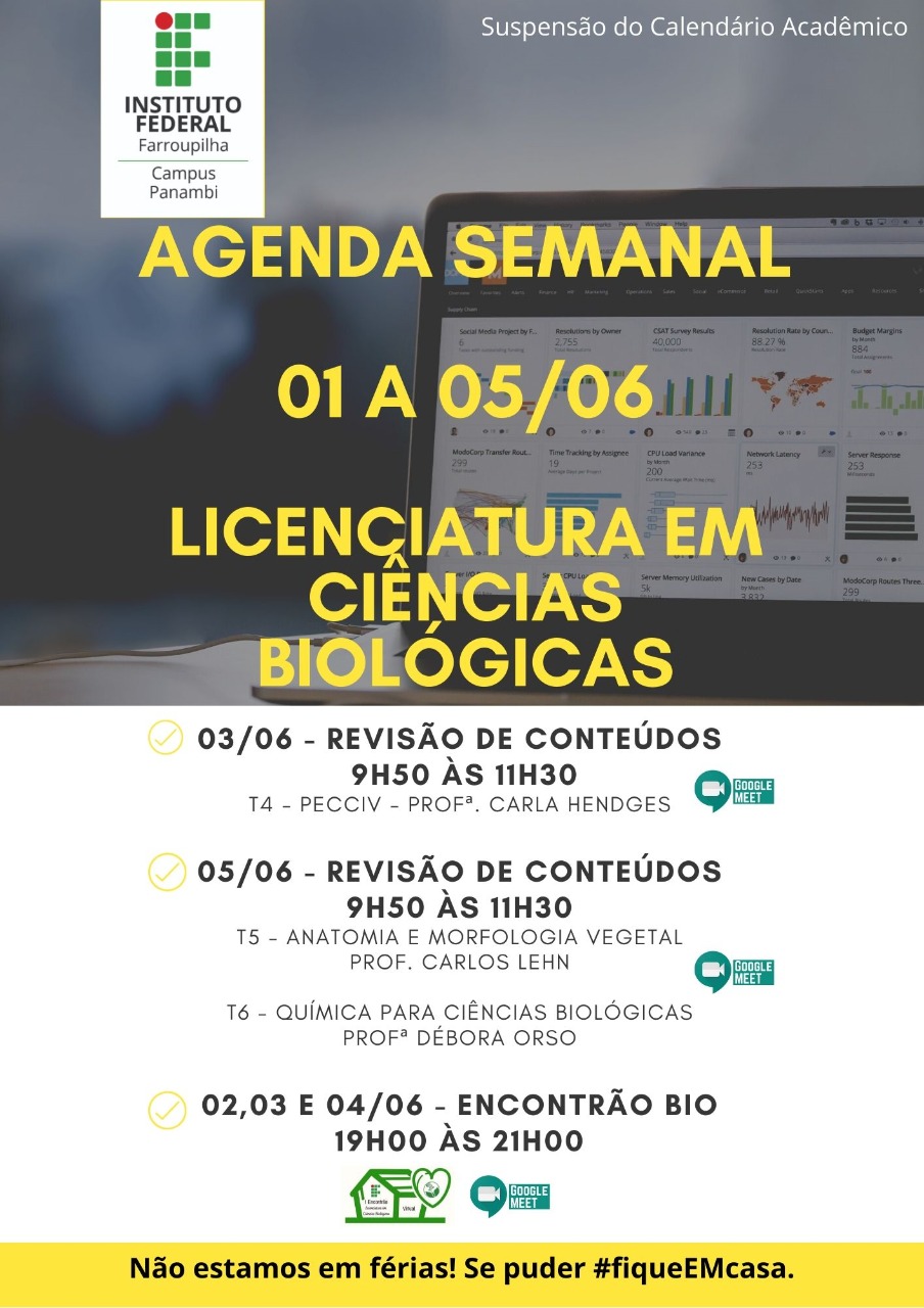 A cada semana, uma agenda contendo as ações que serão desenvolvidas por cada curso, será divulgada no portal institucional e nas redes sociais do Campus Panambi.