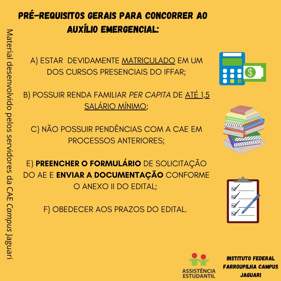 Ambos editais contemplam estudantes com renda per capta de até 1,5 salário.