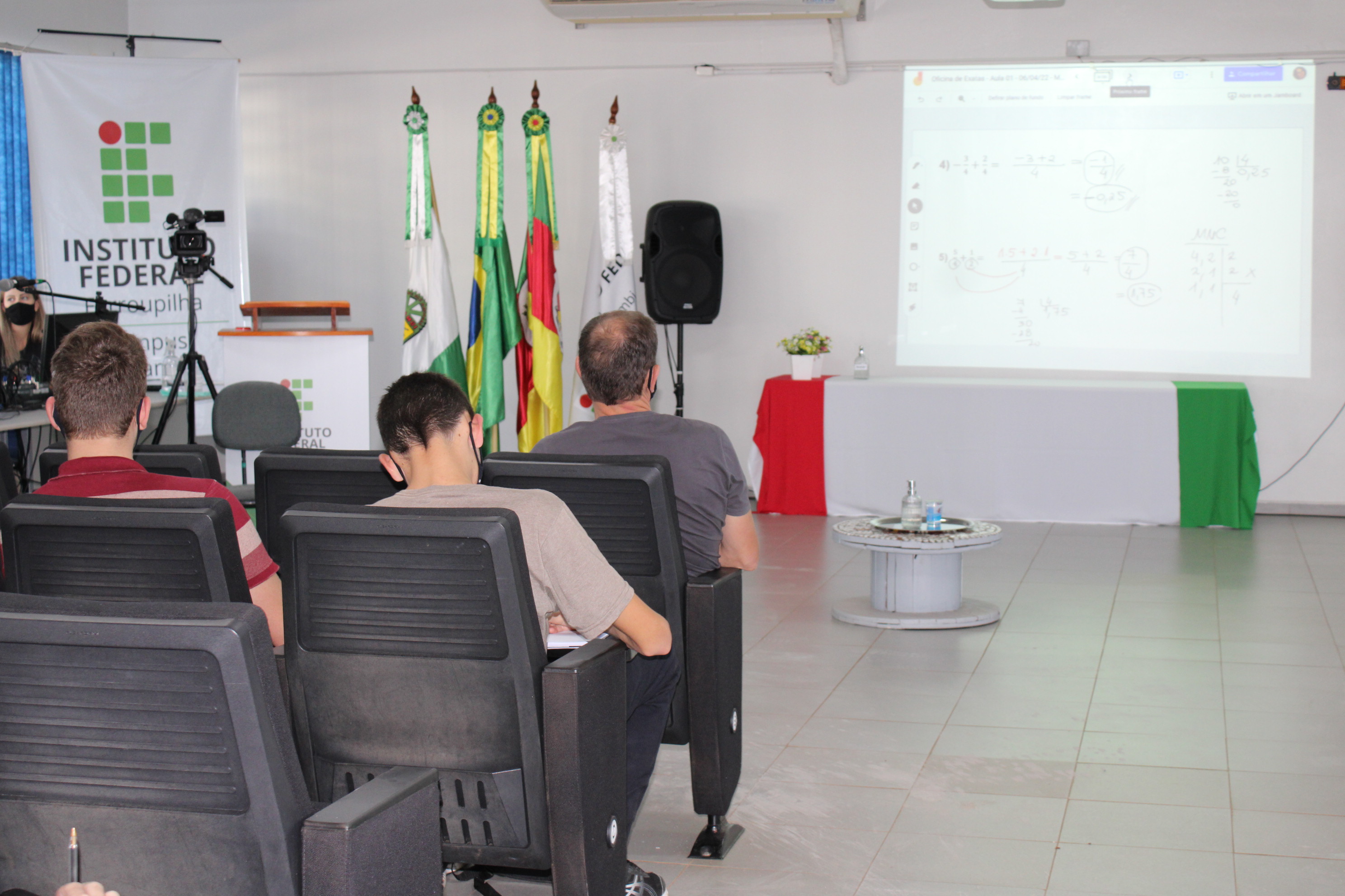 As oficinas iniciaram com um “aulão” para retomada de conceitos básicos dessas disciplinas para as turmas de 1ºs anos, ministrado na tarde de quarta, 06/04, no auditório do Campus. A partir dessa atividade inicial os alunos seguiram para salas de aulas, a fim de resolverem exercícios de fixação em cada disciplina.