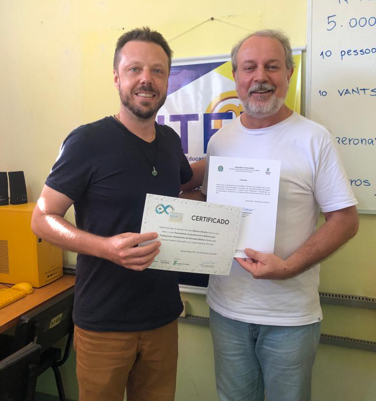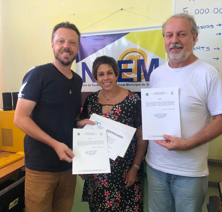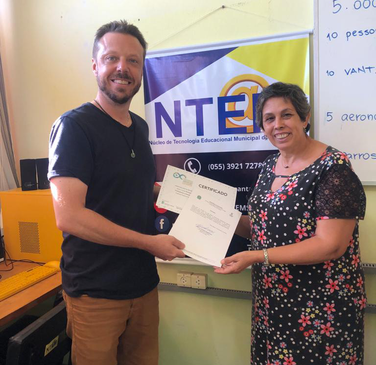 Na última semana, os professores Gilberto Colvero de Oliveira e Marta Martilene Saavedra (foto) da rede municipal de educação em Santa Maria receberam o certificado pelo êxito e conclusão do projeto.