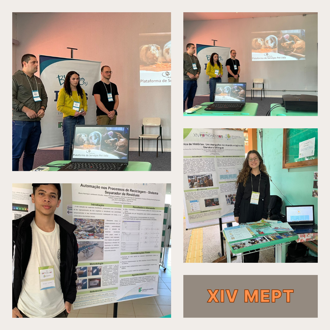 A XIV Mostra de Educação Profissional e Tecnológica do IFFar (MEPT) ocorreu na última sexta-feira (20), no Campus Alegrete. A MEPT é o maior evento científico realizado no IFFar, por contar com representação de todas as unidades da instituição. Realizada anualmente, premia trabalhos destaques apresentados na mostra de banners, nas categorias ensino, pesquisa e extensão, e vencedores dos eventos paralelos (Mostra de Inovação, Bye Bye Boss, BugCup e Mostra de Foguetes).
