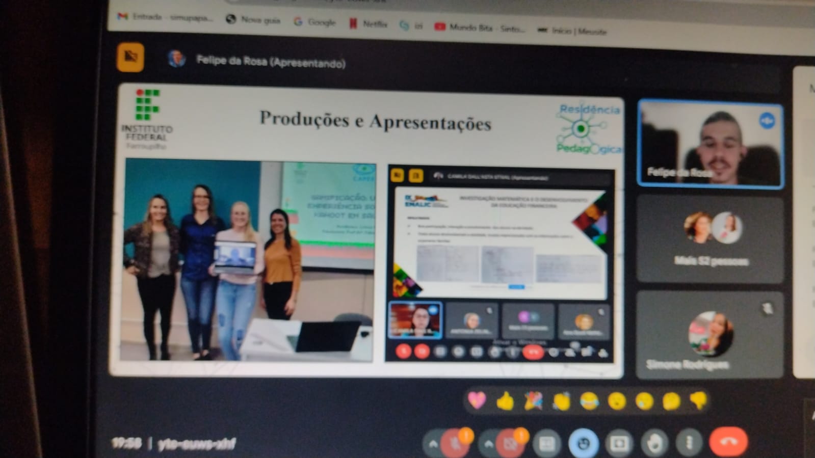 O encerramento desse importante ciclo contou com a presença dos alunos residentes; das coordenações dos cursos envolvidos; das docentes que atuaram na orientação dos Trabalhos de Conclusão de Residência; do Diretor Geral do IFFar – Campus Panambi, Jorge Alberto Lago Fonseca; da Coordenadora local do Programa, Aline Machado Zancanaro; da Coordenadora Institucional dos Programas Educacionais do IFFar, Maria Rosângela Ramos; da representante da Pró-Reitora de Ensino do IFFar, Andriéli Hedlund Bandeira; e da Coordenadora Institucional do Pibid/IFFar, Patrícia Perlin.