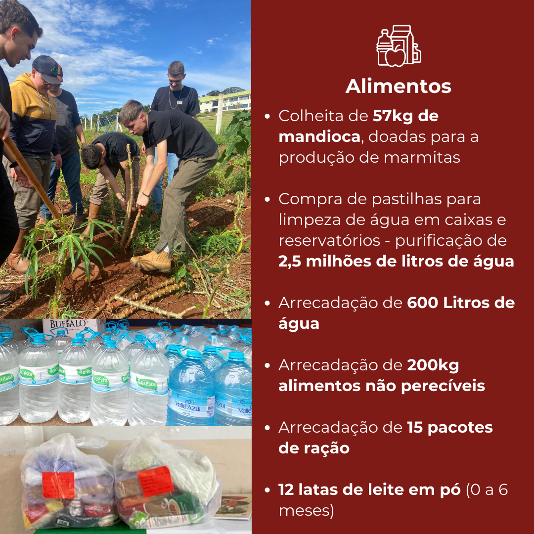 No Campus Panambi, a mobilização envolveu estudantes, servidores, terceirizados e instituições parceiras. Durante esse período, diversas ações solidárias foram realizadas, incluindo a fabricação de sabão líquido e em barra, coleta de mandioca para produção de marmitas, e preparação de kits contendo roupas, brinquedos, alimentos, produtos de higiene e limpeza, utensílios domésticos e material escolar.