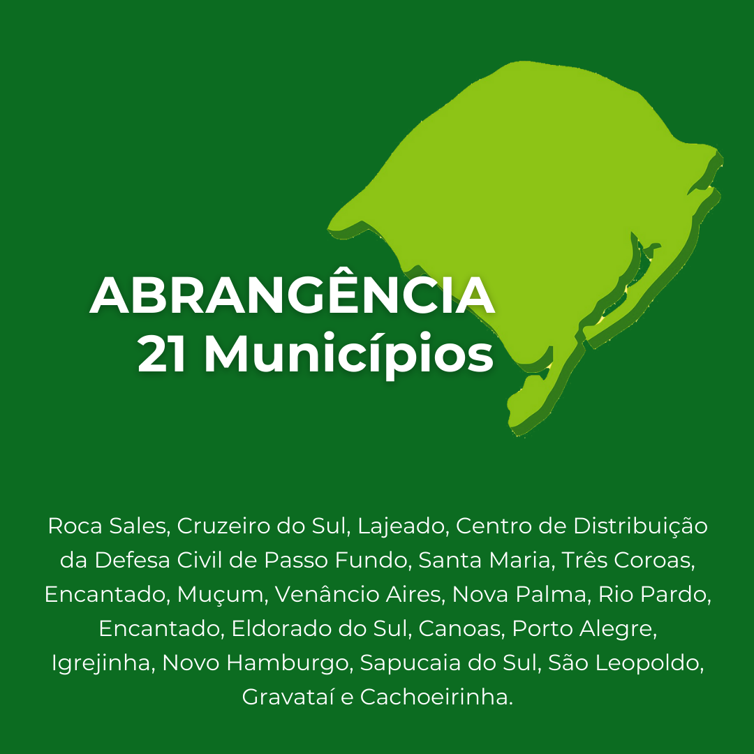 As doações foram encaminhadas a 21 cidades do estado: Roca Sales, Cruzeiro do Sul, Lajeado, Passo Fundo, Santa Maria, Três Coroas, Encantado, Muçum, Venâncio Aires, Nova Palma, Rio Pardo, Eldorado do Sul, Canoas, Porto Alegre, Igrejinha, Novo Hamburgo, Sapucaia do Sul, São Leopoldo, Gravataí e Cachoeirinha.