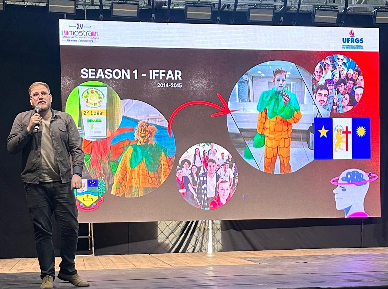 O doutorando Gustavo Pedroso de Moraes, egresso do IFFar - Campus Panambi foi um dos palestrantes da XV MEPT, com a fala intitulada “O IFFar e os futuros possíveis de um egresso”. O aluno destacou sua trajetória iniciada no curso de Licenciatura em Química, onde produziu uma peça teatral para a disciplina de Leitura e Produção Textual, a qual foi classificada na Mostra Cultural e representou a instituição na Reditec de Recife/PE. O egresso destacou a importância das ações de Internacionalização, que o permitiram uma experiência em Portugal, conhecendo pessoalmente autores que estudava no curso, além do incentivo dos professores do Campus Panambi para sua trajetória como pesquisador, o que o fez cursar Licenciatura em Ciências Biológicas, posteriormente Mestrado e agora Doutorado na área. Ele conclui: “A pesquisa no IFFar é muito importante. Por meio dela conhecemos o método científico. É bom ver como o IFFar incentiva os alunos a desenvolverem projetos, apresentarem e publicarem”.