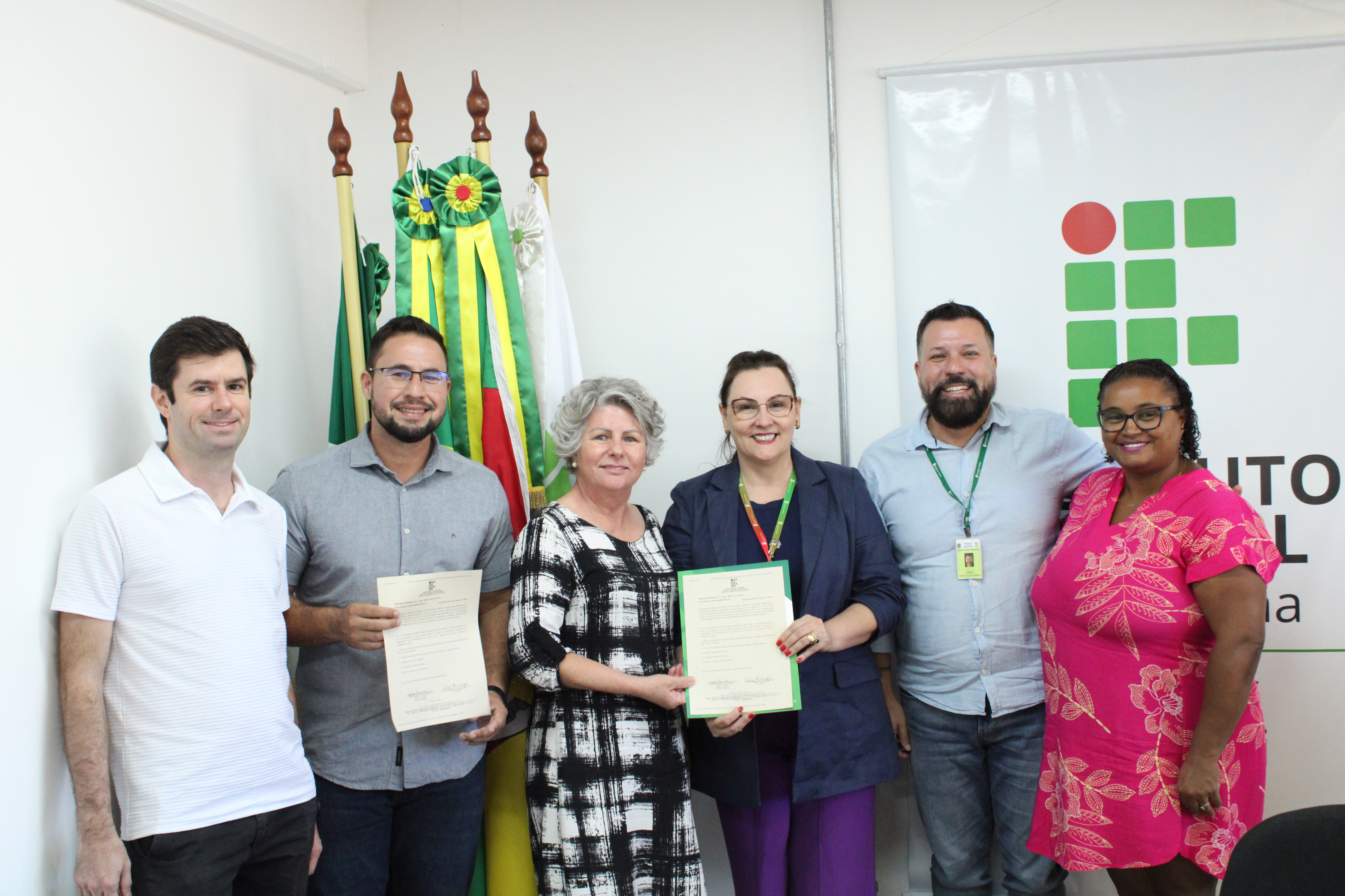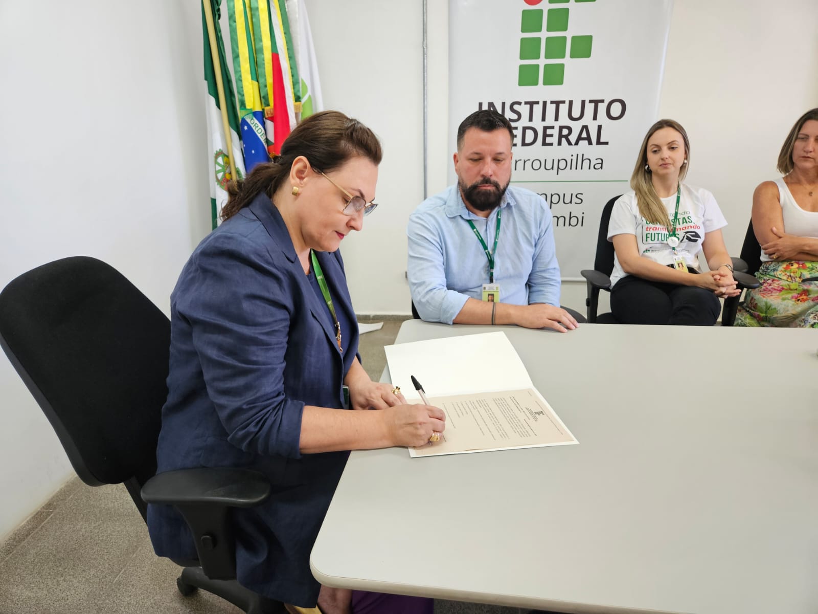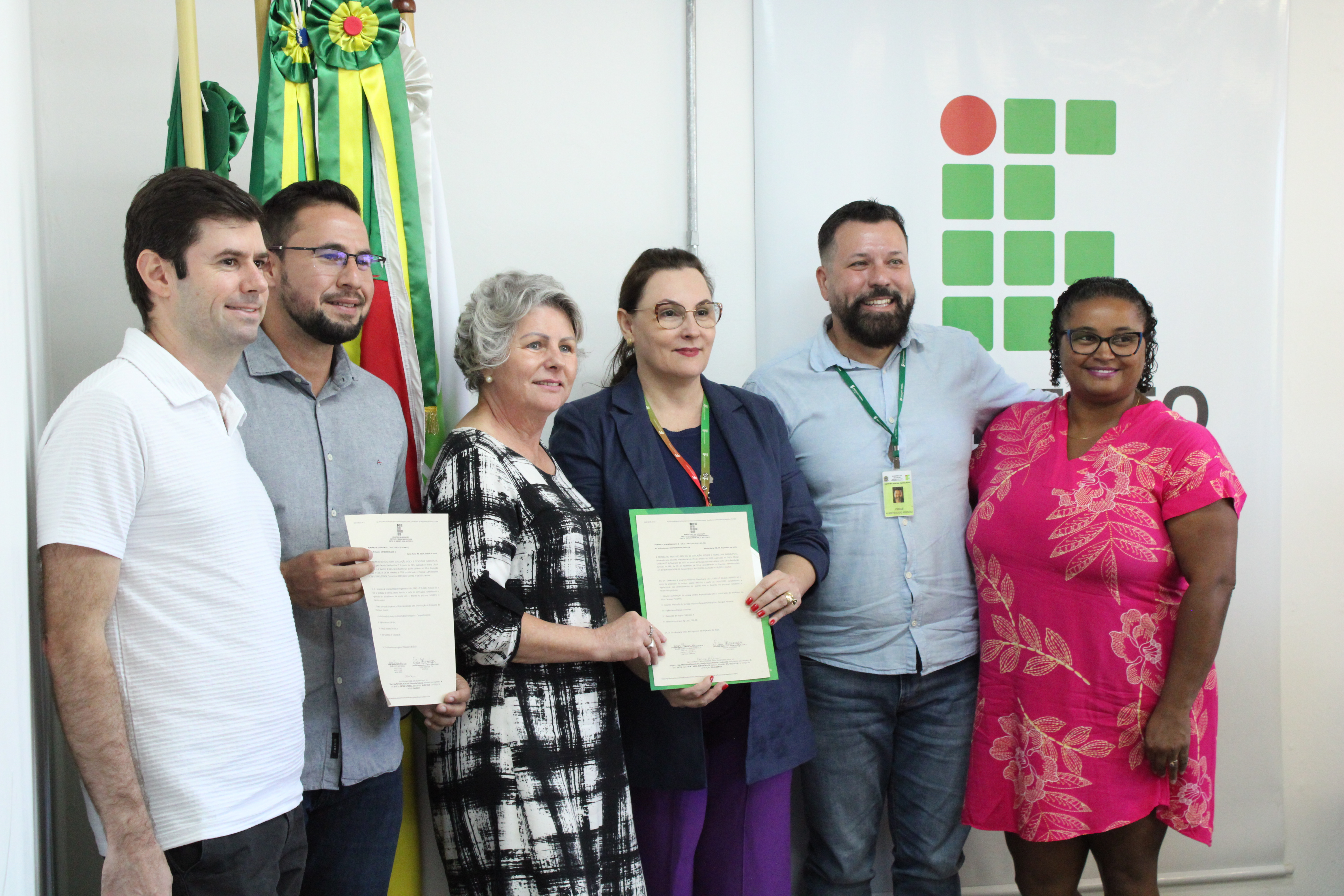 A cerimônia de assinatura, realizada no campus, contou com a presença da reitora do IFFar, professora Nídia Heringer; do diretor-geral do Campus Panambi, professor Jorge Alberto Lago Fonseca; do diretor-geral eleito, professor Marcelo Bataglin; da arquiteta do IFFar, Fabíola Machado; além de servidores do campus e de representantes da empresa contratada para a execução da obra.