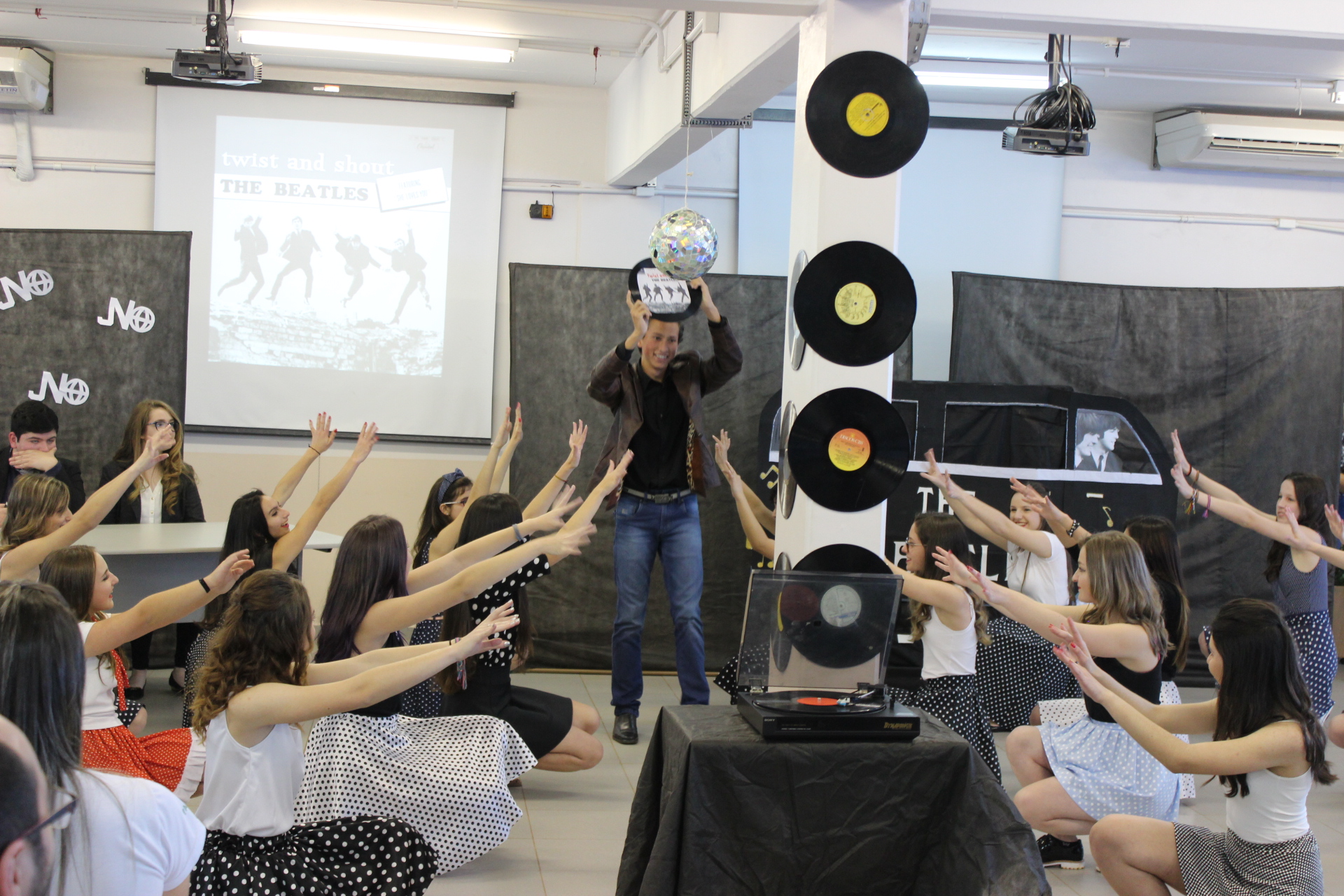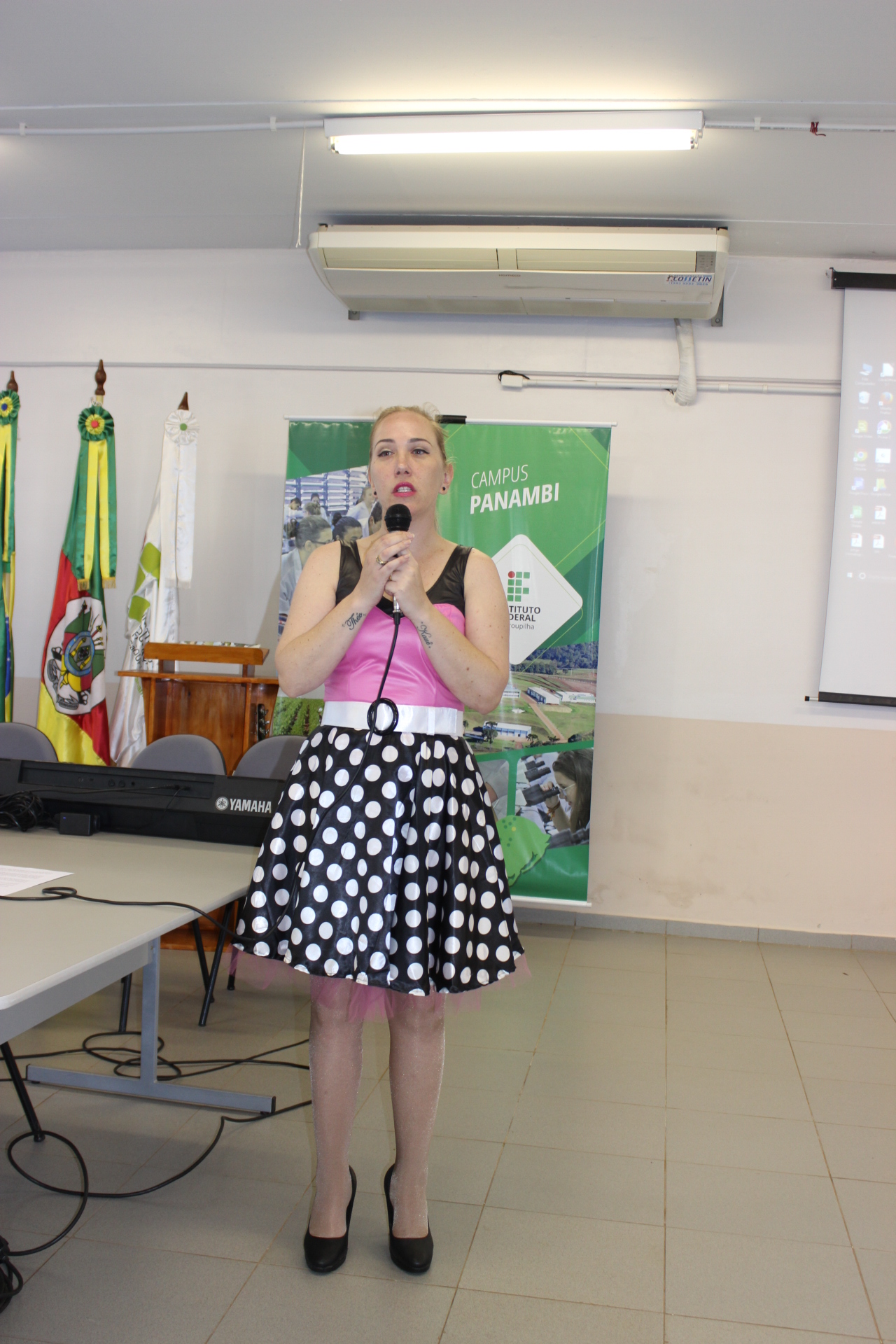 Alunos dos 2ºs anos dos cursos técnicos integrados ao ensino médio do IFFar – Campus Panambi desenvolveram parte do aprendizado da língua inglesa por meio de atividades culturais. A cada ano, uma nova década é escolhida para compor o pano de fundo dos estudos temáticos e das consequentes apresentações que os alunos realizam no festival Sing and Dance, ao final do primeiro semestre letivo de cada ano. A proposta já está no segundo ano de atividades e é liderada pela professora Tamara da Rosa, que também conduz um projeto de ensino na área.