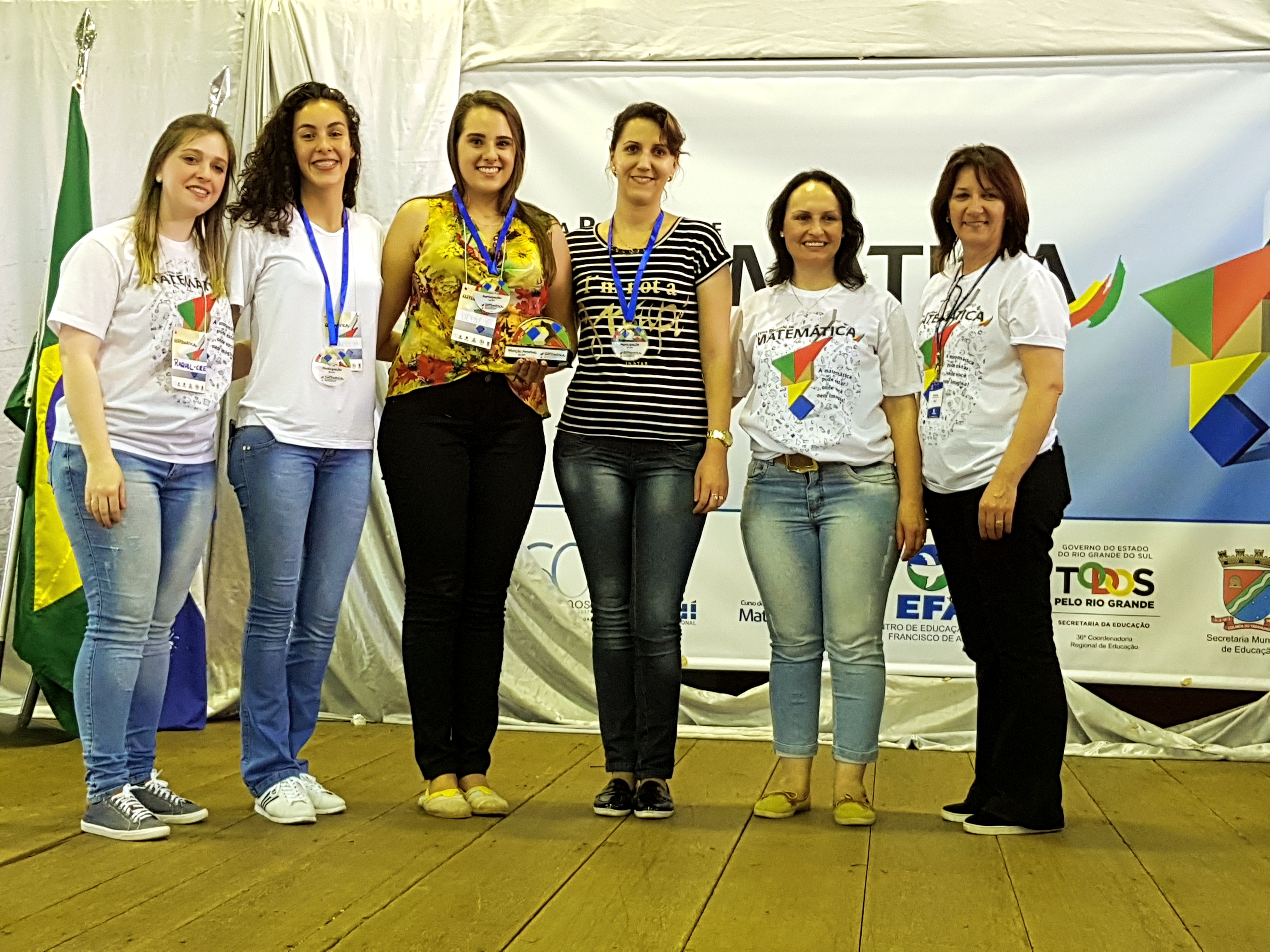Receberam Menção Honrosa os trabalhos “Energia solar fotovoltaica”, apresentado pelas alunas Deise Casagrande e Rafaela Müller, que contou com a orientação da professora Alice Gebert; e “Ensino e aprendizagem de matrizes e hidrocarbonetos para estudantes com deficiência visual: uma proposta de recurso didático”, apresentado pelas alunas Magna Pomina e Fernanda Malheiros, sob orientação da professora Graciela Fagundes Rodrigues.