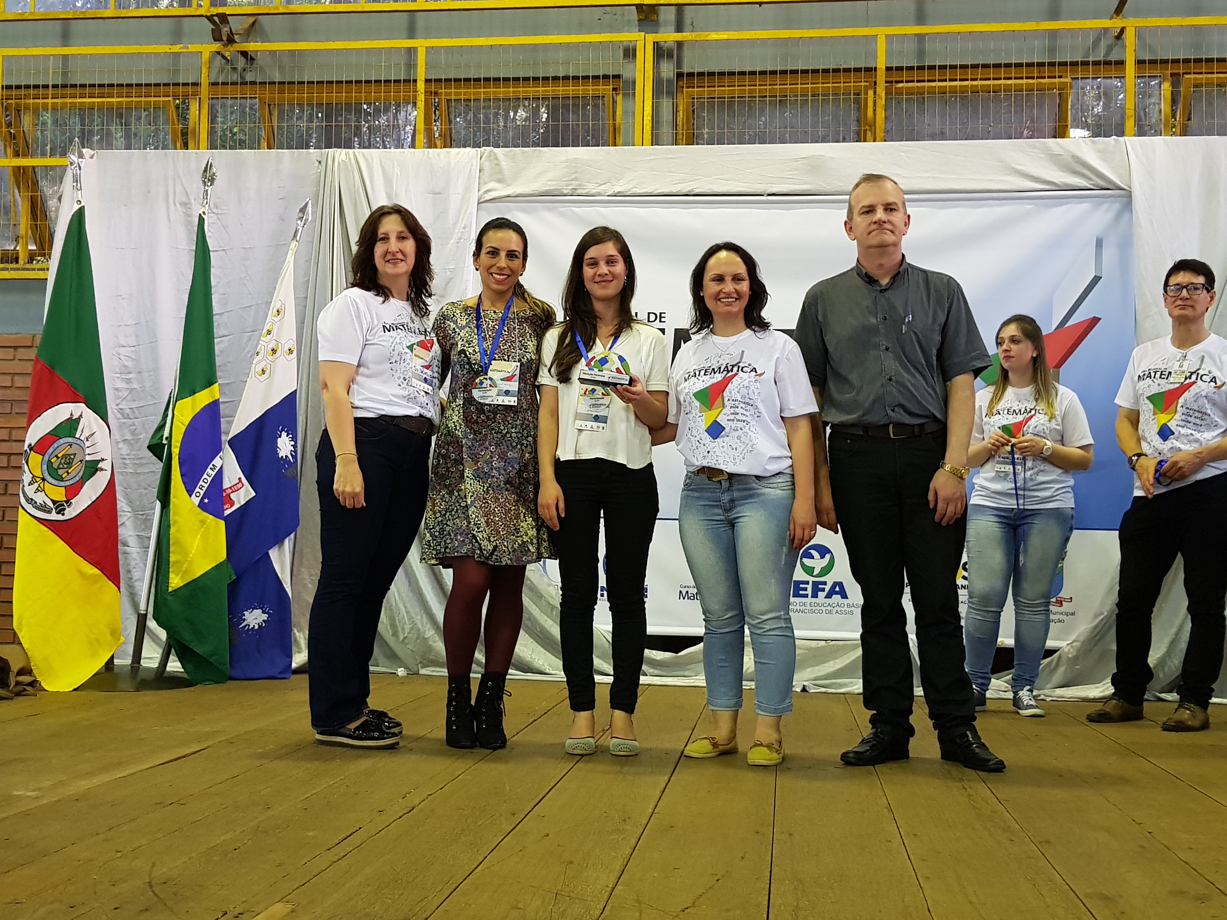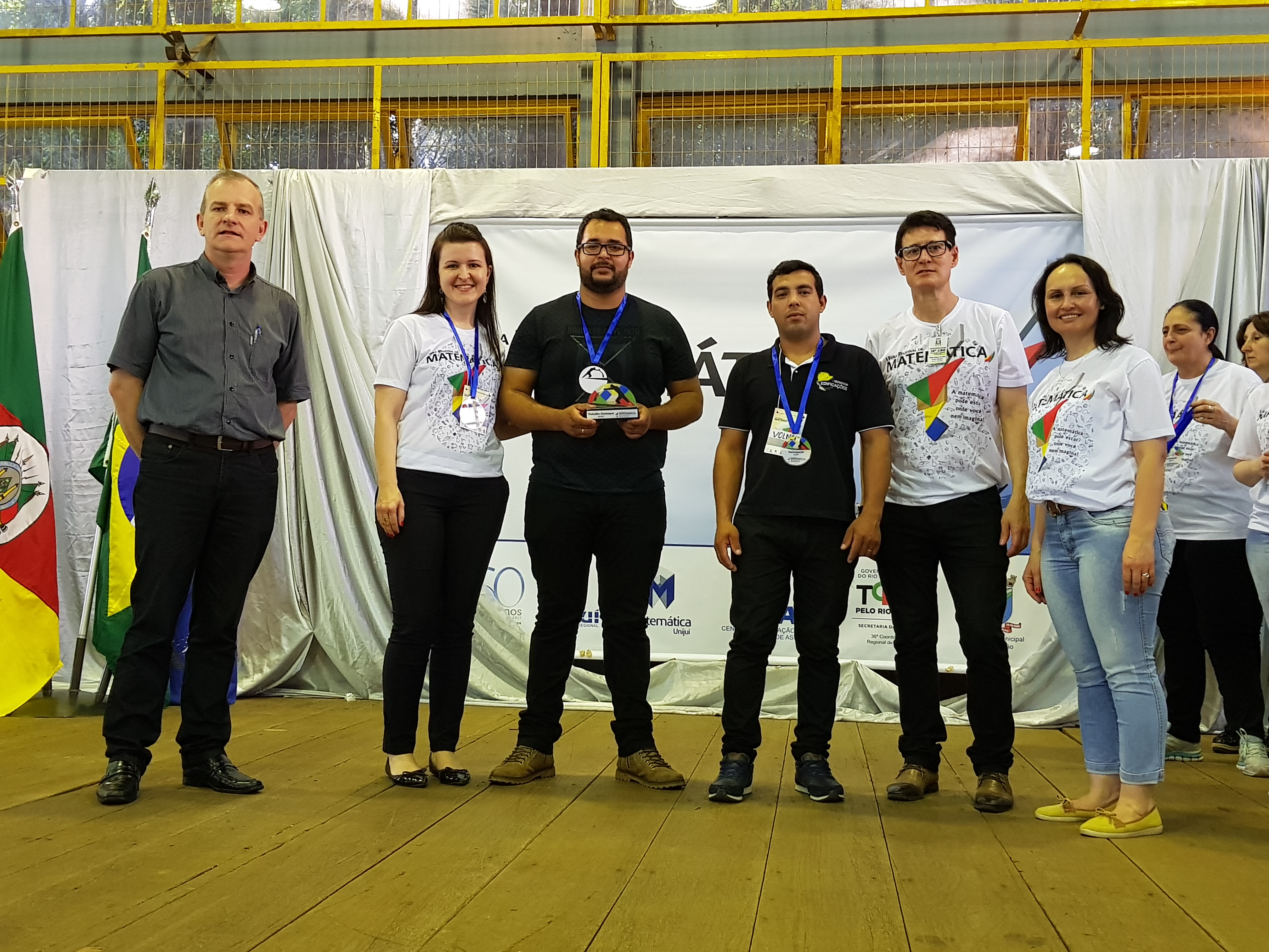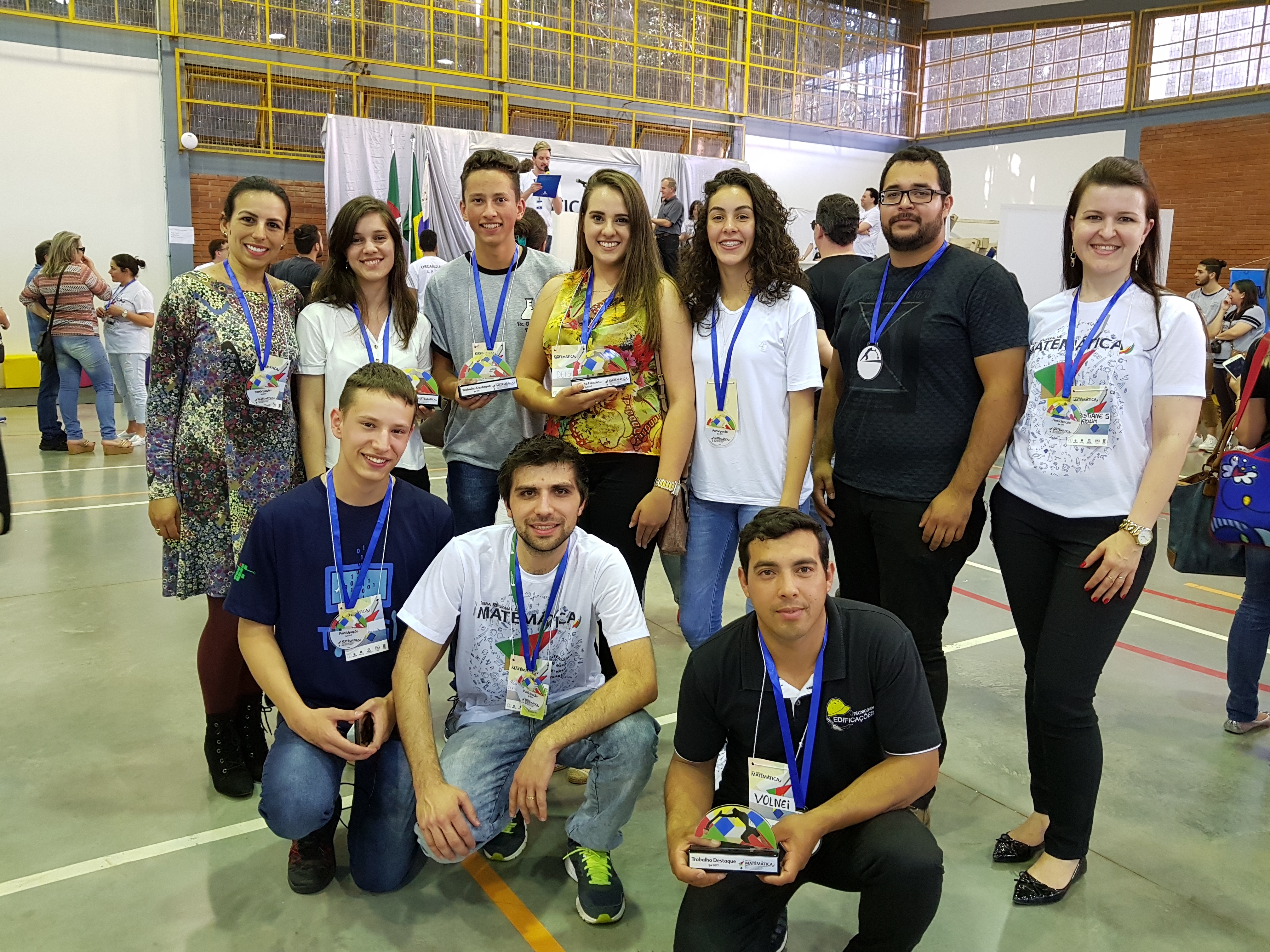 Os trabalhos destaque foram: 1) “A matemática na construção civil”, apresentado pelos alunos do primeiro ano do Curso Técnico em Edificações - PROEJA, Volnei Soares do Amaral e Silas Meirelles da Rosa, juntamente com a professora Cristiane Sonego Rolim, que é Engenheira Civil; 2) “Preparação para as olimpíadas de matemática: OBMEP e OIMSF”, apresentado pelos alunos Darlon Antonio Neumann e Felipe Borges, com orientação do professor Renan Gabbi.