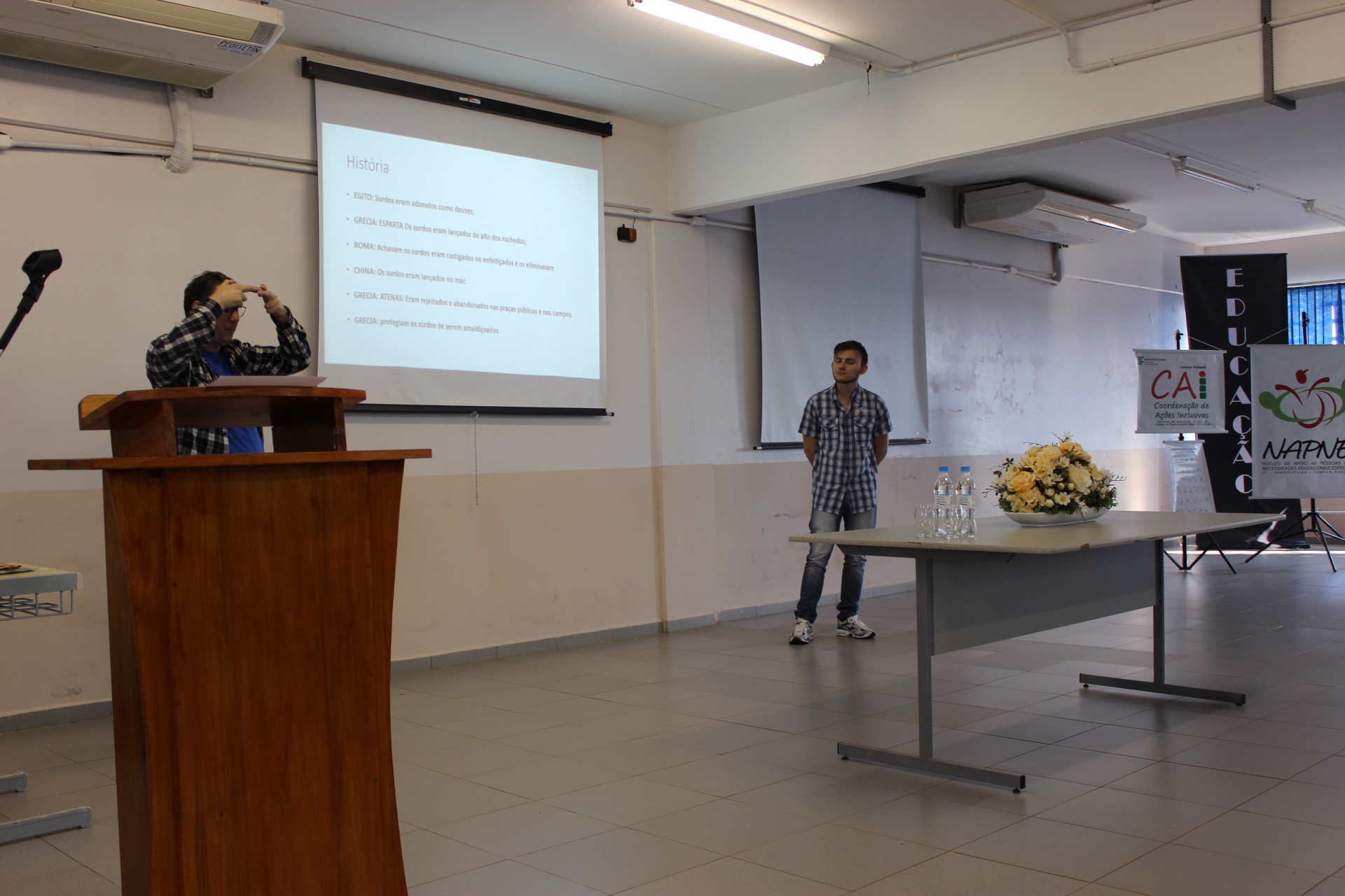 O dia 26 de setembro é o Dia Nacional da pessoa Surda. Tal data é reconhecida por lei, sendo alusiva à criação da primeira Escola de Surdos no Brasil, na cidade de Rio de Janeiro. Mas para além da data, devemos praticar ações cotidianas para aproximar pessoas surdas e ouvintes, e por isso os integrantes do Núcleo de Núcleo de Apoio às Pessoas com Necessidades Educacionais Especiais (NAPNE), ligados à Coordenação de Ações Inclusivas do IFFar – Campus Panambi, promoveram uma palestra com Cristian Rafael Grade de Paula e Paulo Augusto Matter, que abordaram o histórico da data, com as lutas e conquistas da comunidade de pessoas surdas no Brasil.