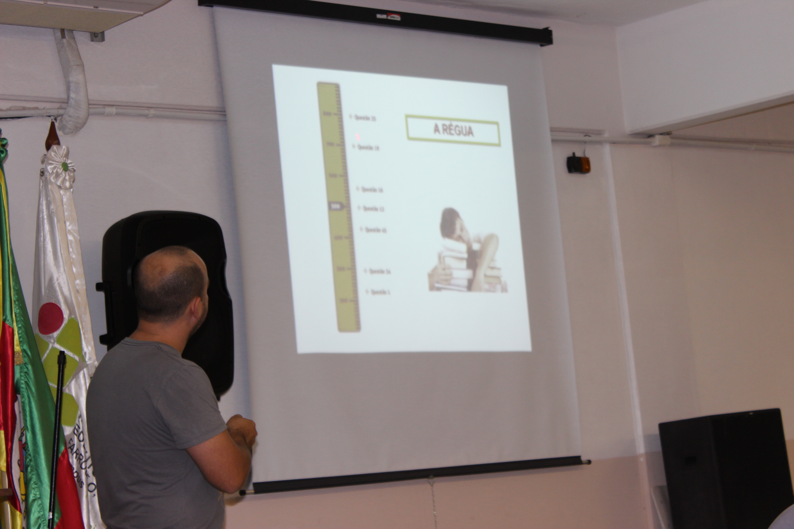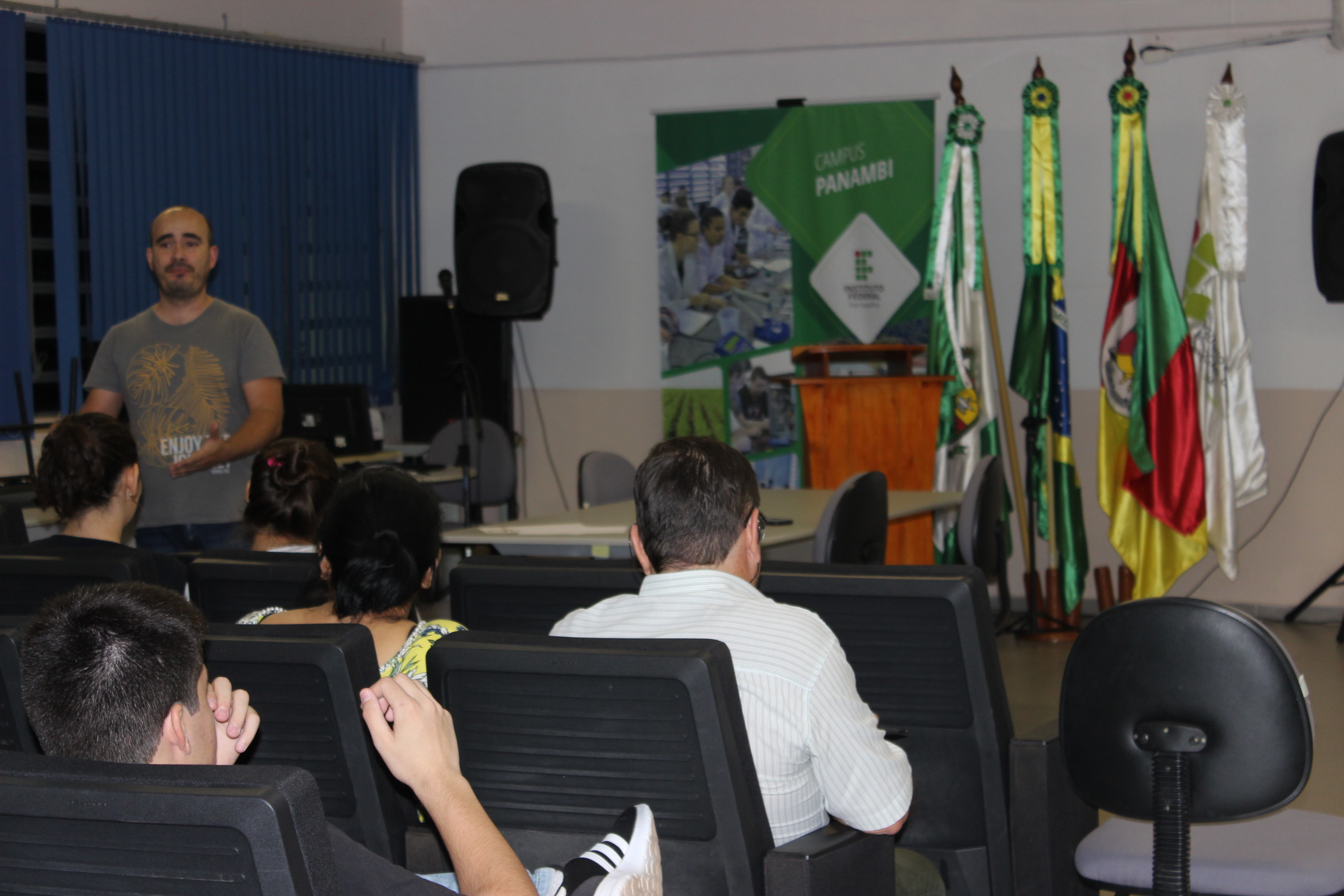 Na quarta-feira, 9/05, no auditório do IFFar – Campus Panambi, o professor Luiz Eduardo Silva Porto ministrou uma palestra com posterior esclarecimento de dúvidas sobre o funcionamento do ENEM. O professor explicou detalhadamente a metodologia utilizada para elaboração e correção da prova (Teoria Resposta ao Item – TRI), que atribui pesos diferentes às questões de nível fácil, médio e difícil, minimizando o fator “sorte” dos candidatos. O professor abordou estratégias para resolução da prova, assim como explicou a importância de pontuar bastante nas provas em que o número de acertos da média nacional é baixo. Ainda, Luiz enfatizou a necessidade do candidato se sair bem na redação, pois essa nota só depende do desempenho dele.