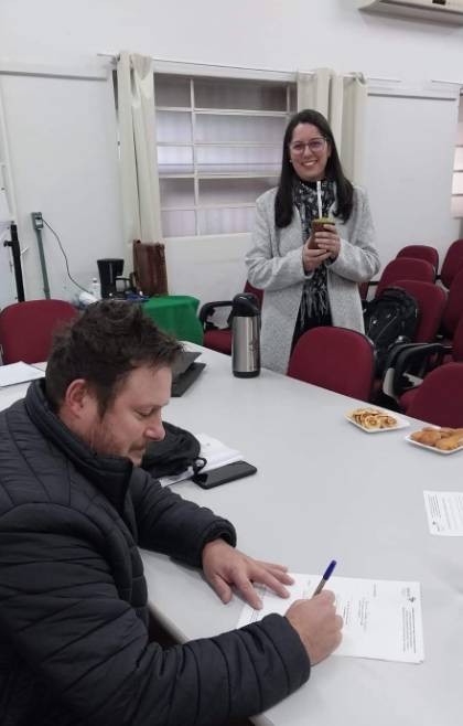 O trabalho foi defendido pelo agora egresso do curso Marciano Percincula, orientado pela professora Dra. Vanessa de Cássia Pistóia Mariani, e coorientado pela professora Dra. Neiva Mari Frisou Auler, na linha de pesquisa Organização e Memórias dos Espaços Pedagógicos da Educação Profissional e Tecnológica.