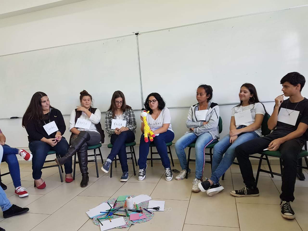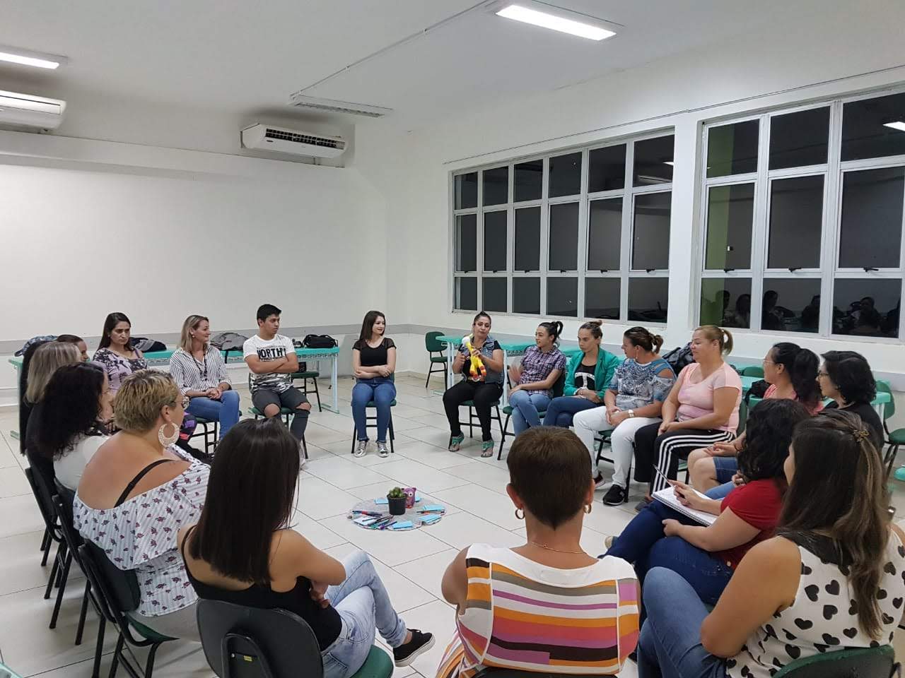 As facilitadoras de práticas restaurativas Daniela Camargo e Thaiane Socoloski, juntamente com a Técnica em Assuntos Educacionais Medianeira Weyh, estão realizando desde o mês março círculos de construção de paz para os estudantes que ingressaram em 2019 no campus Santo Ângelo. O objetivo desta prática é de aproximar e conhecer os estudantes ingressantes além de proporcionar um espaço de acolhida e cuidado, buscando a prevenção da evasão.