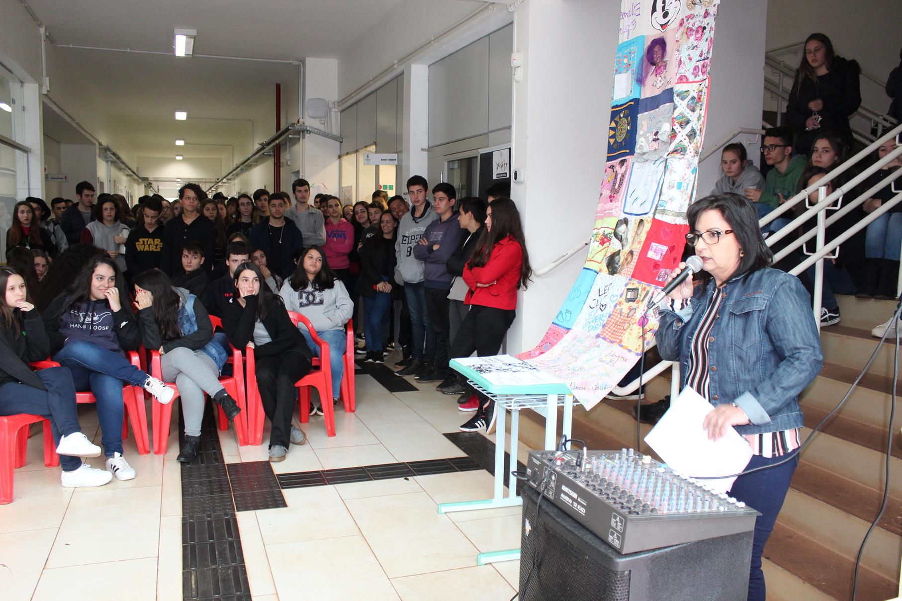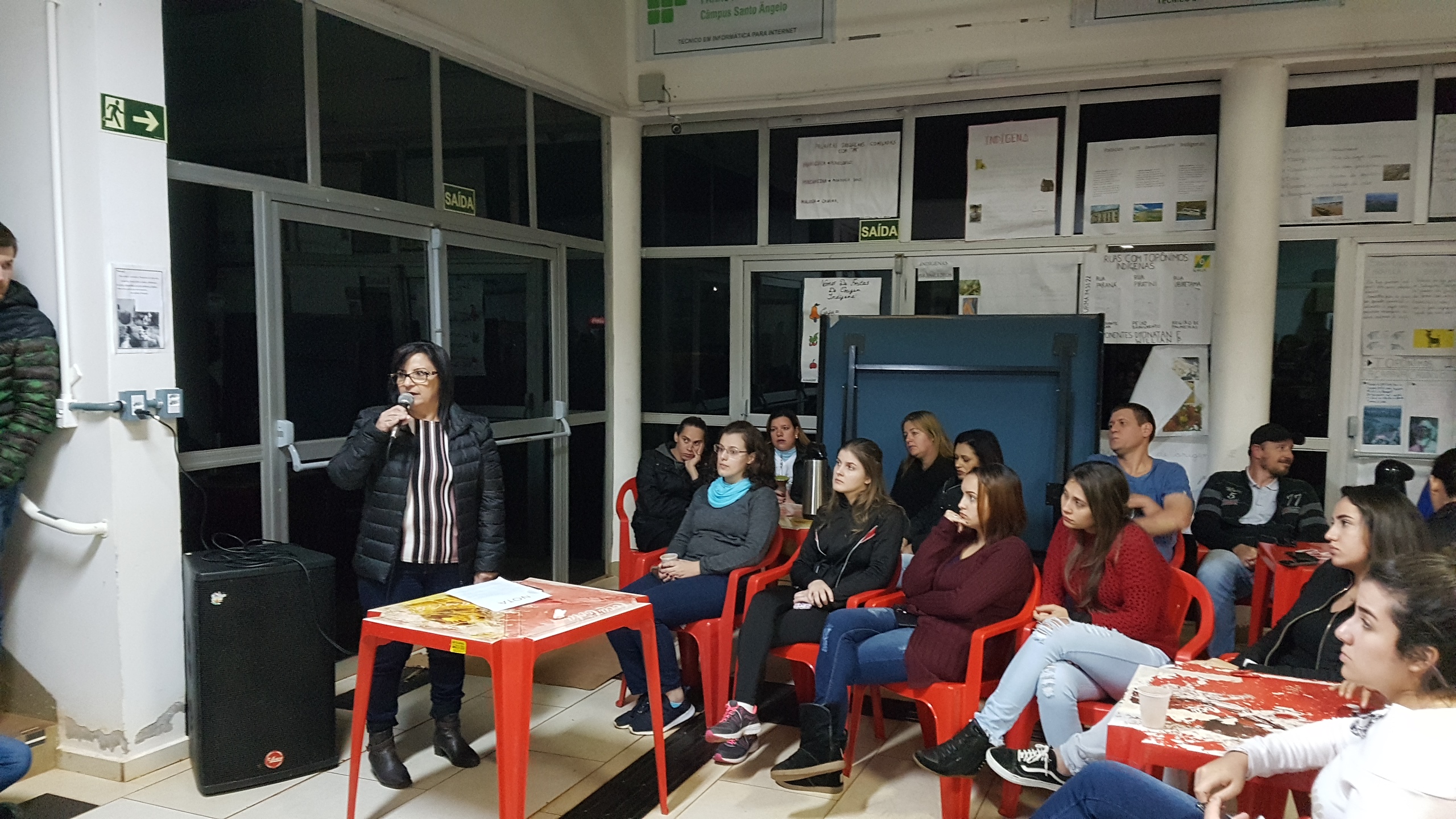 No Campus Santo Ângelo, o ato aconteceu em dois momentos, pela manhã, com os estudantes dos cursos técnicos integrados e, à noite, com os estudantes dos cursos superiores, técnico Proeja e Subsequentes. Durante os dois momentos, a Diretora Geral, Rosane Rodrigues Pagno, contextualizou que se trata de um movimento nacional sincronizado em todos os campi dos Institutos Federais, com o objetivo de reversão do corte orçamentário de 30%, informando que esses 30% não incidem sobre a Assistência Estudantil e, por isso, representam no IFFar 41,94% sobre as despesas de custeio. Após a Diretora Geral leu a nota oficial do Conif.
