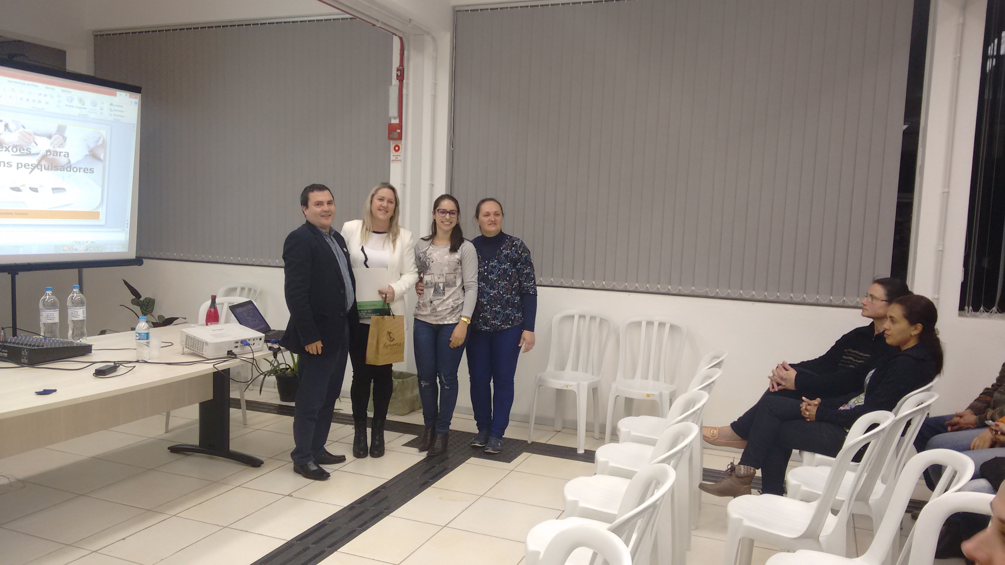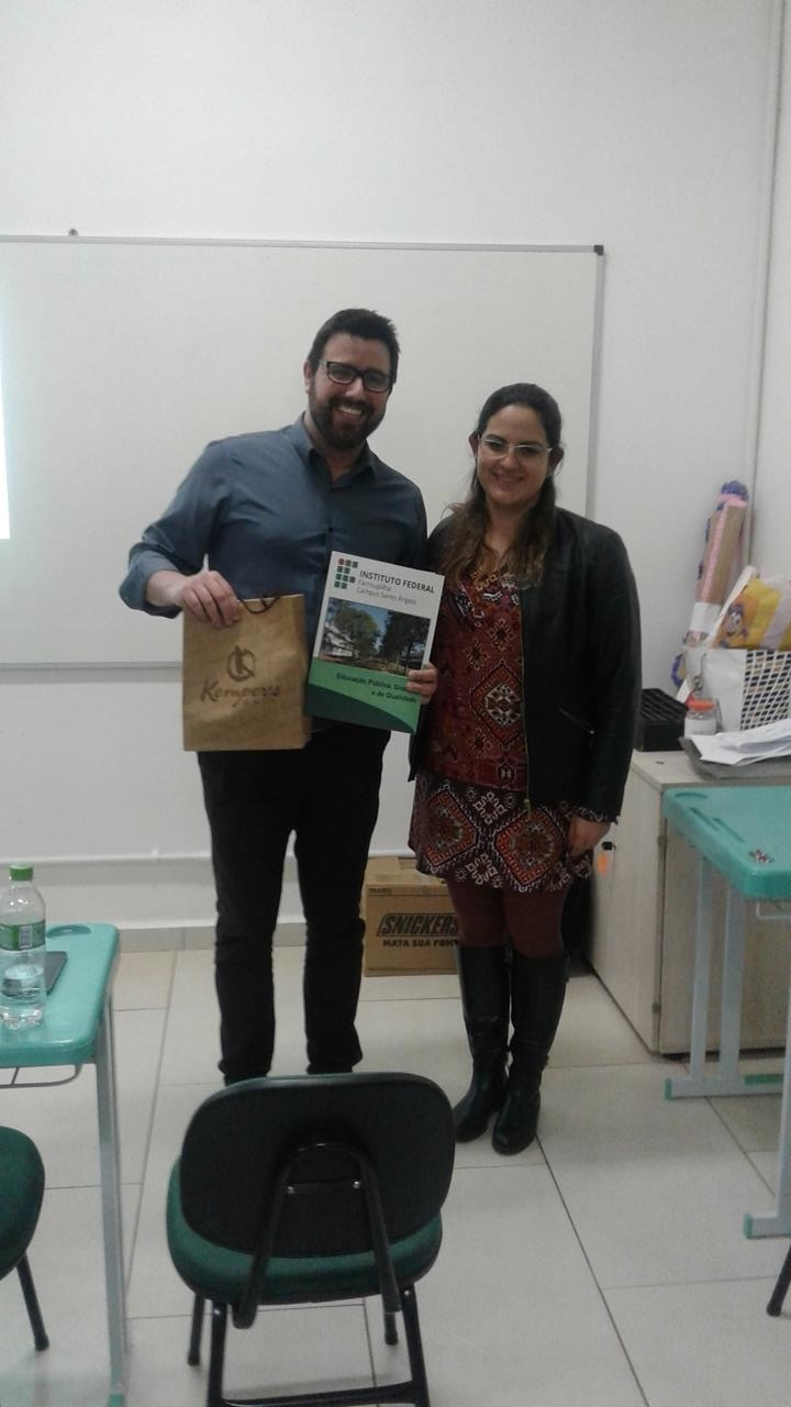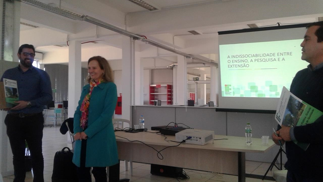 Participaram como palestrantes do evento o Pró-reitor de Pesquisa, Pós-graduação e Inovação, do IF Farroupilha, Arthur Frantz; o profº Sidinei Radons(UFFS), a profª Rosane Fontana (URI), a profª Tânia Regina Warpechowski (IFFar) , a Técnica Administrativa, Aline Lutte (IFFar); a profª Karlise Nascimento e a profª Eliane Felden.