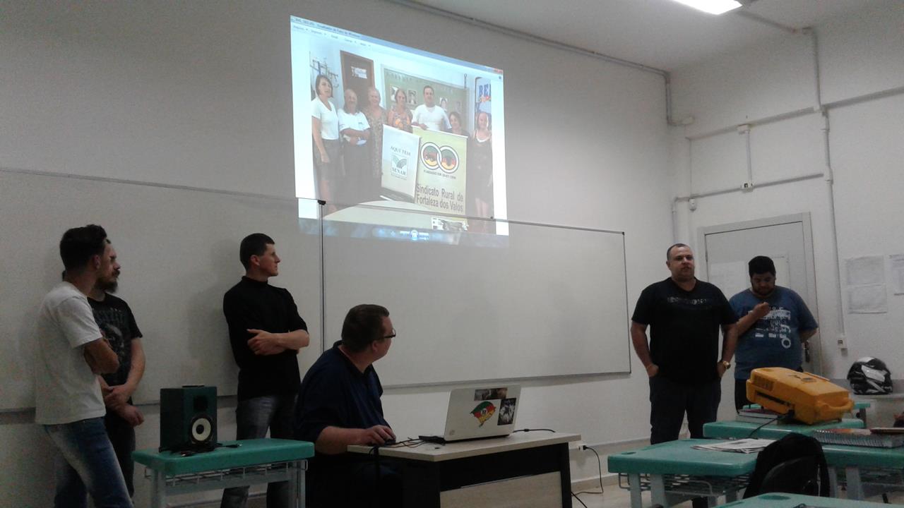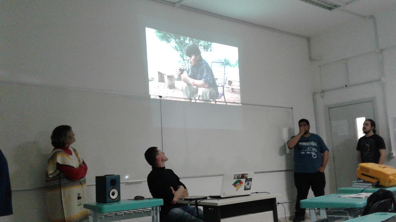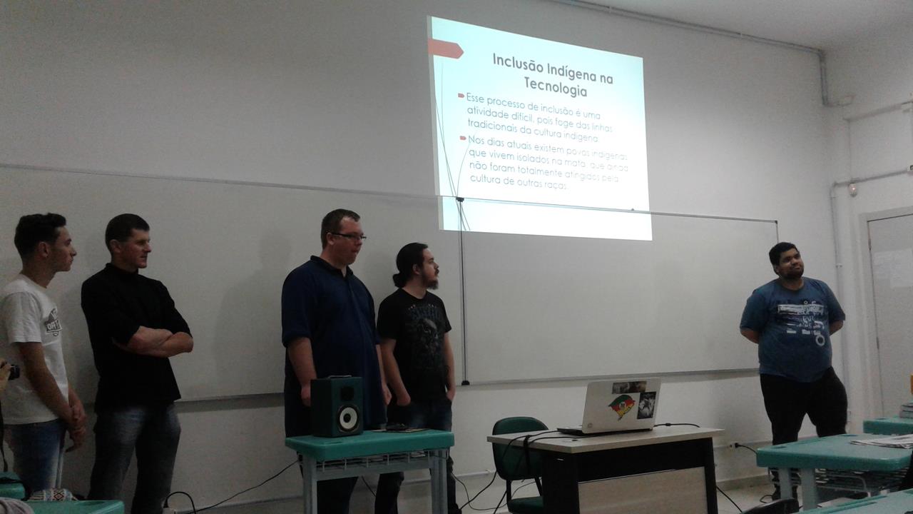 A primeira apresentação contou com a participação da professora de história da UFFS (Universidade Federal da Fronteira Sul), Bedati Aparecida Finokiet, que trouxe uma importante contribuição em sua fala sobre os indígenas. E do aluno Jeferson Moraes, que também é professor de informática do SENAR (Serviço Nacional de Aprendizagem Rural), e mostrou um pouco do seu belo trabalho com idosos.