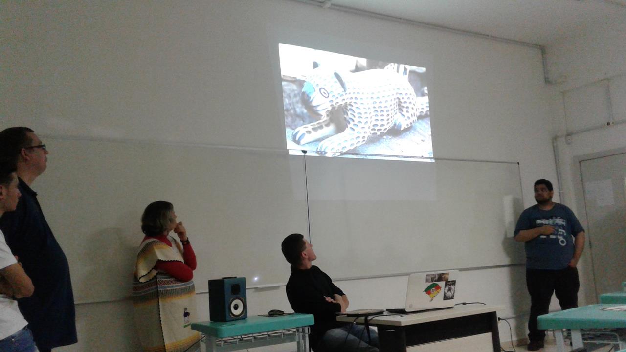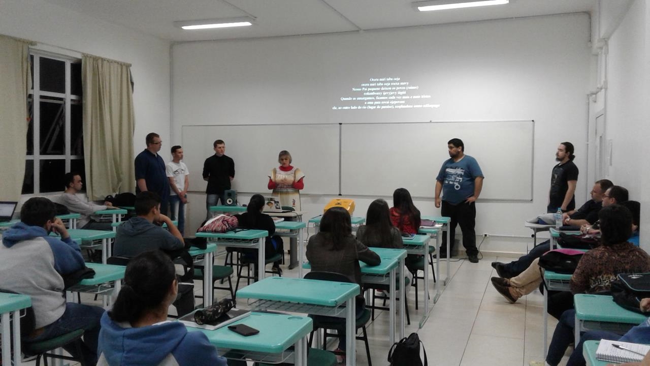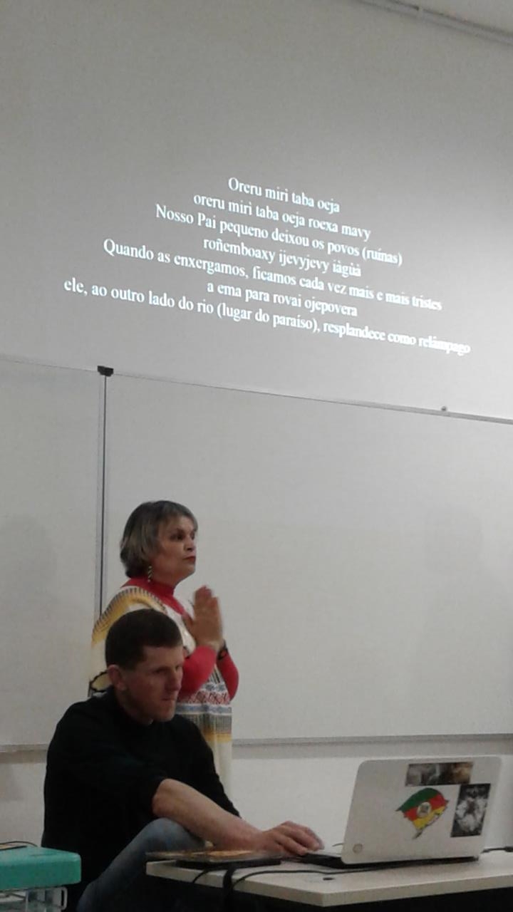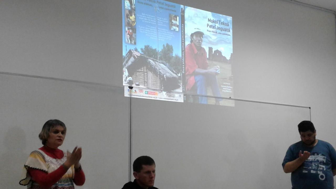 A primeira apresentação contou com a participação da professora de história da UFFS (Universidade Federal da Fronteira Sul), Bedati Aparecida Finokiet, que trouxe uma importante contribuição em sua fala sobre os indígenas. E do aluno Jeferson Moraes, que também é professor de informática do SENAR (Serviço Nacional de Aprendizagem Rural), e mostrou um pouco do seu belo trabalho com idosos.