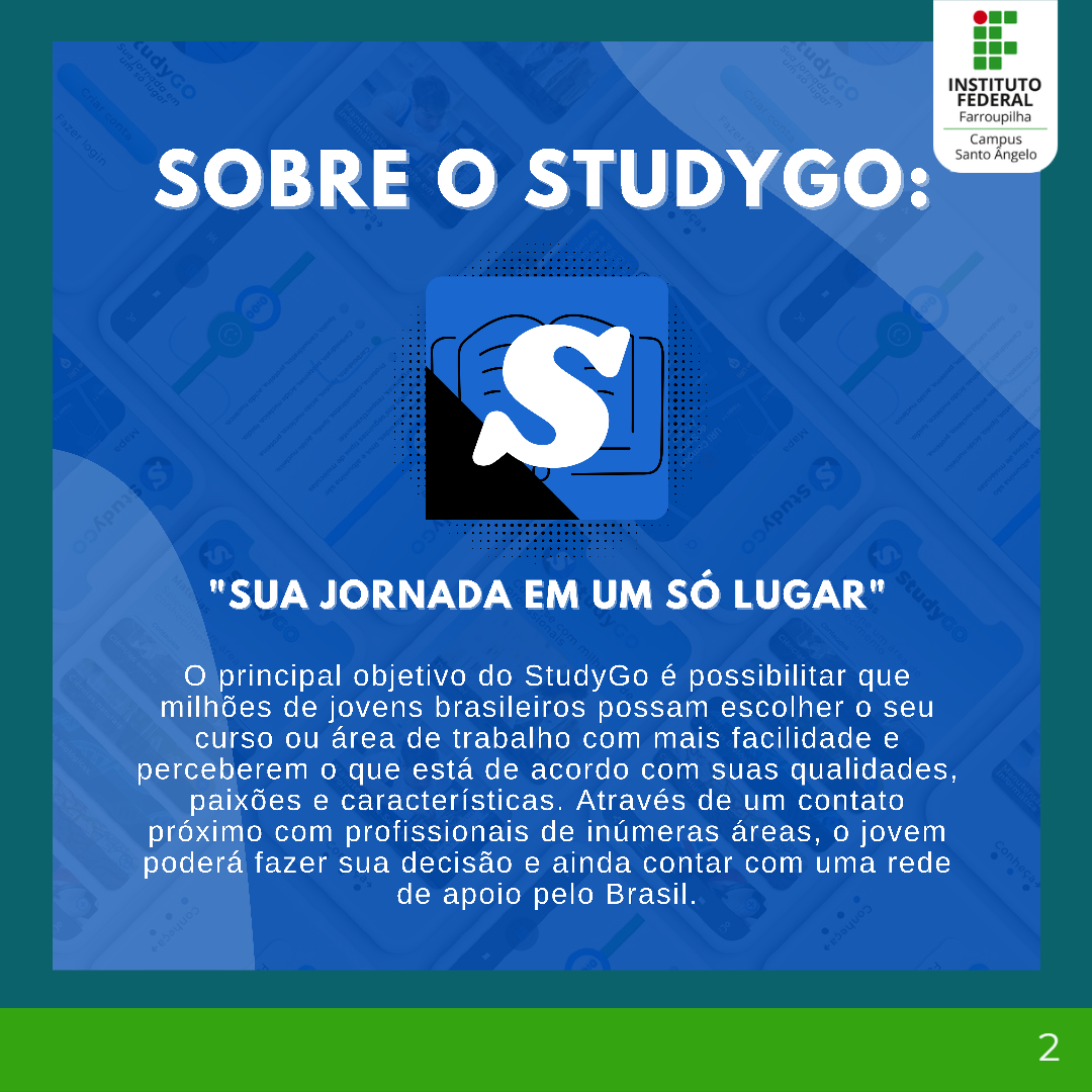 Os alunos Aline Lucca Pedroso, Gustavo de Almeida Ströher, José Frederico Araújo Lucca, Rafaela Rocha Locateli e Raiane Brondani de Lima são segundo ano do curso de Manutenção e Suporte em Informática e criaram a startup StudyGO (@studygo_app), para ajudar os jovens a achar sua área de atuação.