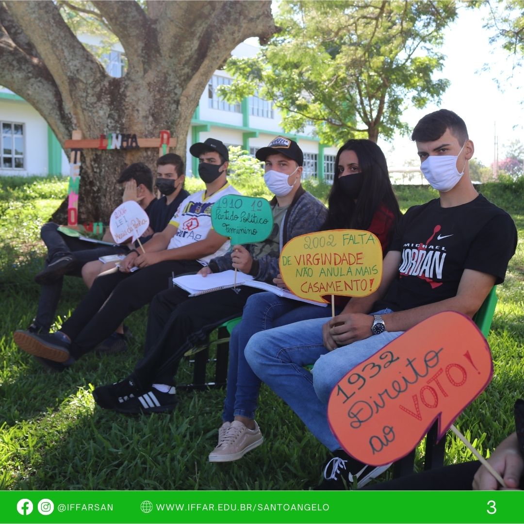 Com a lembrança de cada uma dessas conquistas busca-se fortalecer ainda mais as discussões sobre igualdade de gênero nos espaços institucionais. A proposta foi desenvolvida na disciplina de Língua Portuguesa e Literatura Brasileira.
