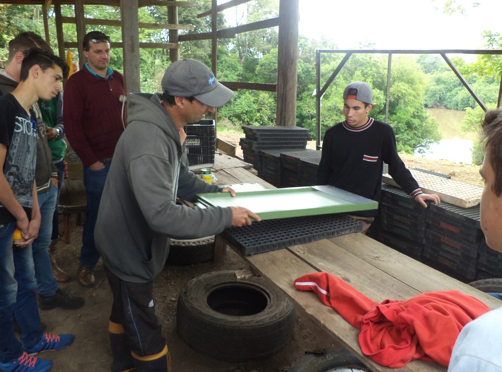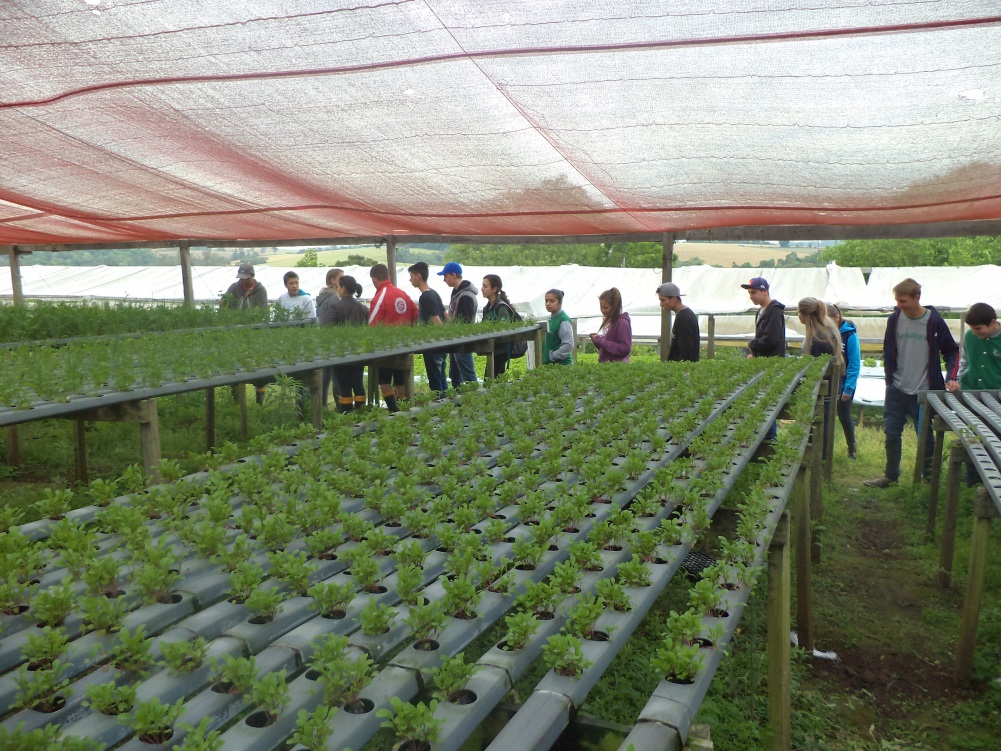 A primeira visita foi à propriedade do agricultor Luis Carlos Jek, produtor de hortaliças em sistema hidropônico, onde os alunos interagiram com o colaborador Jadir Oliveira em relação à técnica de fertirrigação, produção de mudas, manejo de pragas e doenças e embalagem das hortaliças para comercialização.