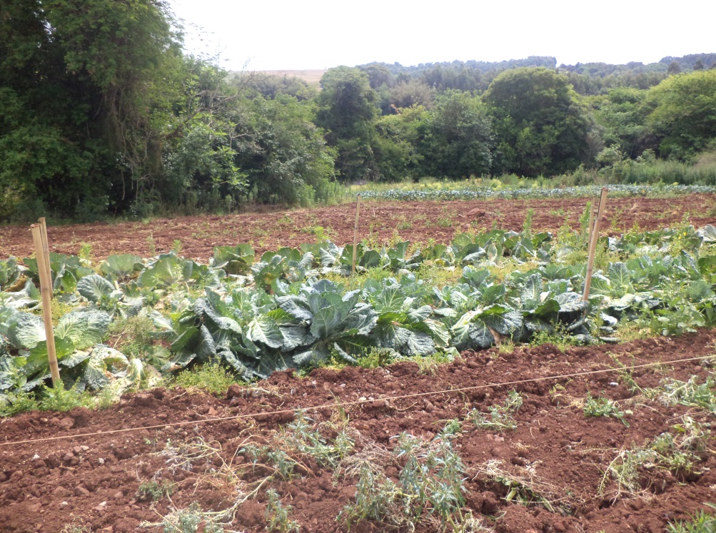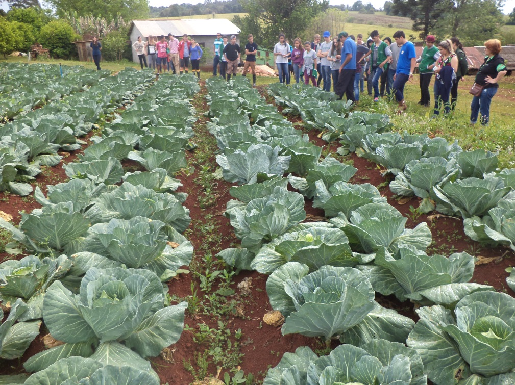O roteiro seguiu na propriedade de Aramis, Veraci e Robson Moser, onde o destaque é para o cultivo de repolho com sistema de irrigação. Os agricultores explanaram sobre o plantio, adubação, controle de plantas invasoras e pragas assim como a comercialização dos produtos. “Além disso, os estudantes puderam observar que as atividades agropecuárias podem estar interligadas, pois na propriedade dos Moser as folhas de repolho que sobram na lavoura são utilizadas para alimentar a criação de peixes espécie carpa capim”, comenta a Agrônoma Márcia. Na propriedade também puderam conferir a produção de morango, variedade Camarosa, voltada para o consumo e para a comercialização, devido à grande procura pelo produto.