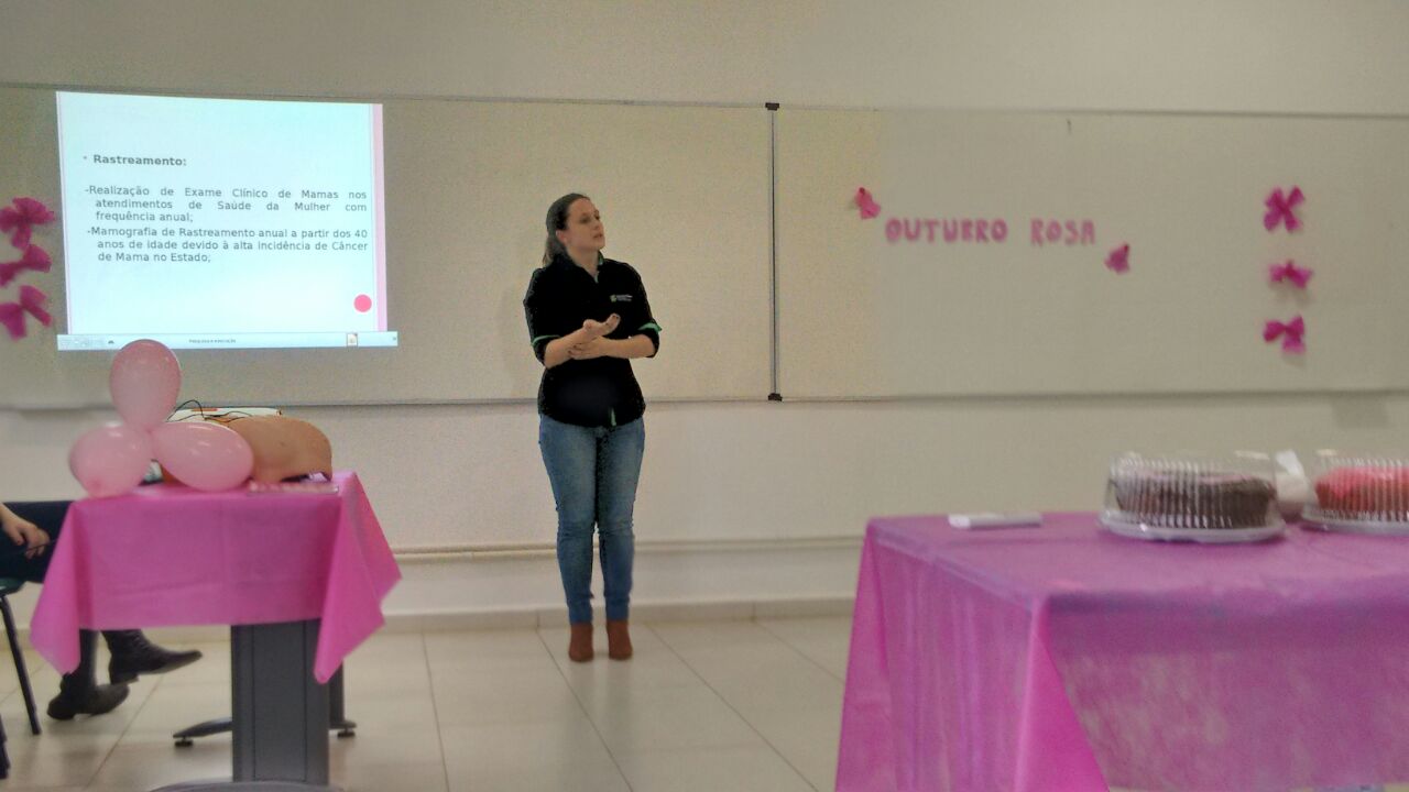 Outubro é o mês da Luta contra o Câncer de Mama, por este motivo a Coordenação da Assistência Estudantil realizou um momento de interação e reflexão sobre Saúde da Mulher com as servidoras do Campus Santo Ângelo. Foram retomados alguns cuidados como mamografia, autoexame de mamas e sinais e sintomas sugestivos de lesões cancerígenas. A atividade foi conduzida pela médica e pela enfermeira do Campus. Na próxima semana serão realizadas outras atividades referentes ao Outubro Rosa com os discentes.