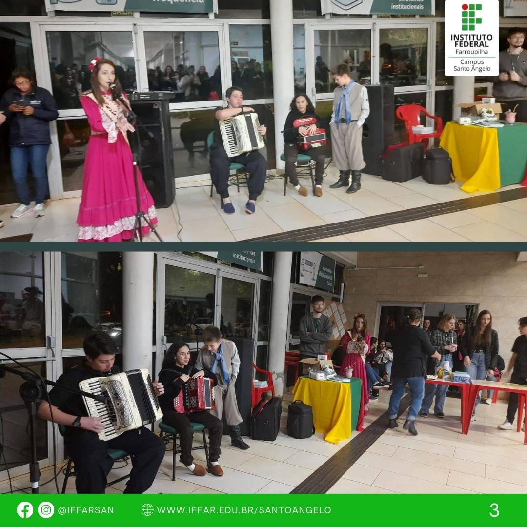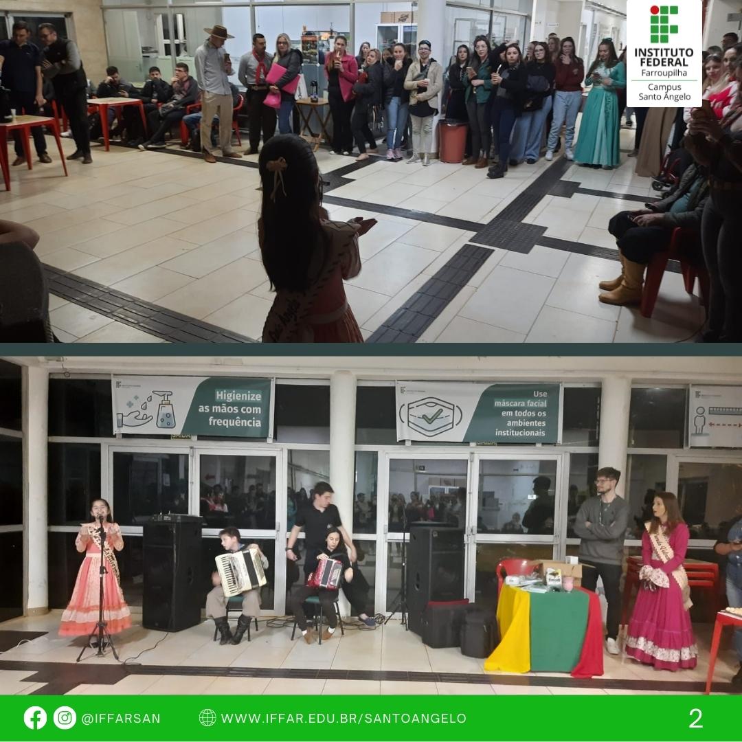 Na noite de 21 de setembro de 2022 houve a continuação da programação alusiva à Semana Farroupilha do IFFar Campus Santo Ângelo, organizada pelos Coordenadores do Cursos Superiores e Subsequente, Direção e Coordenação Geral de Ensino para estudantes e servidores.