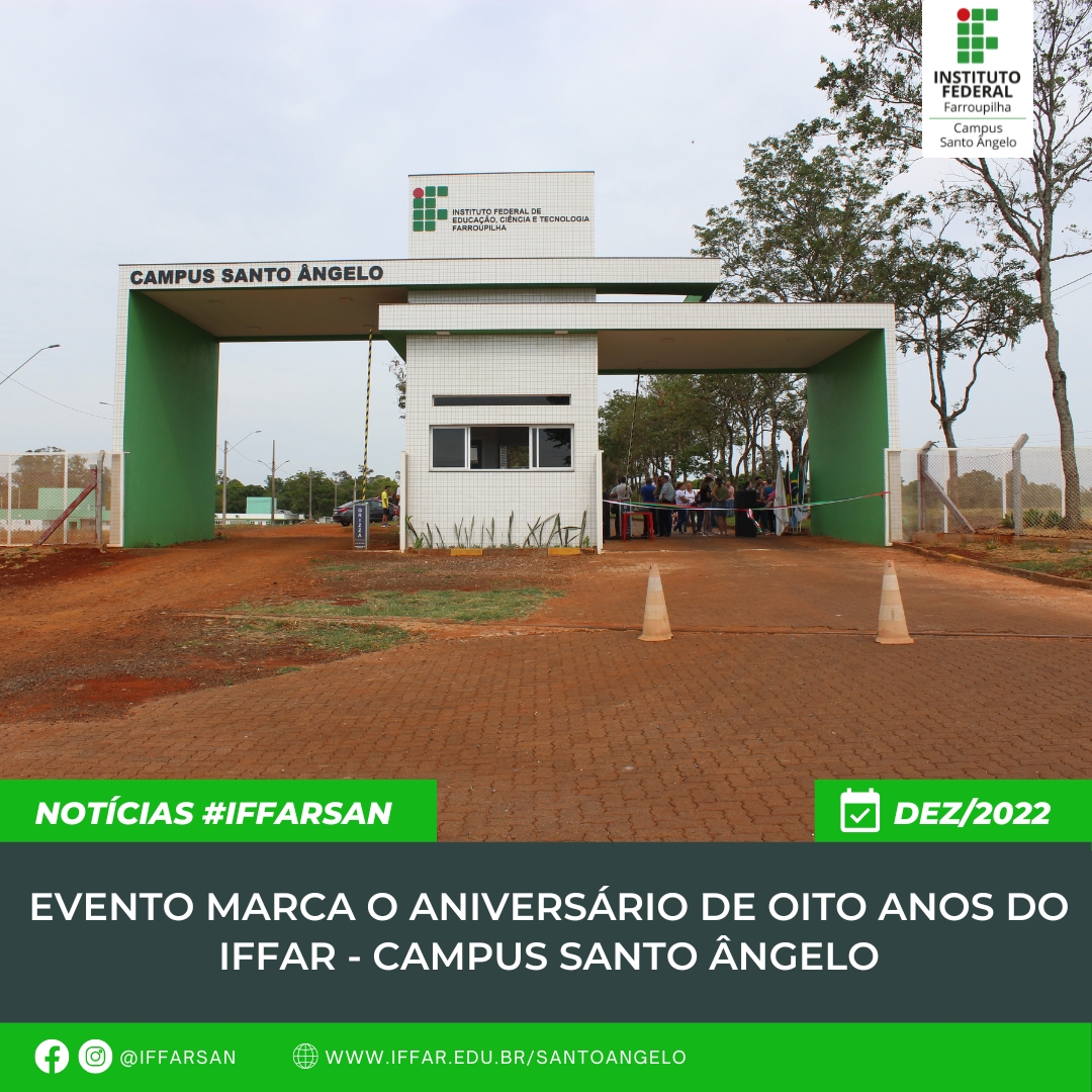 No dia 10 de dezembro de 2022 o Campus Santo Ângelo do Instituto Federal Farroupilha (IFFar), realizou evento presencial alusivo ao aniversário de oito anos de atuação junto a comunidade de Santo Ângelo e região.