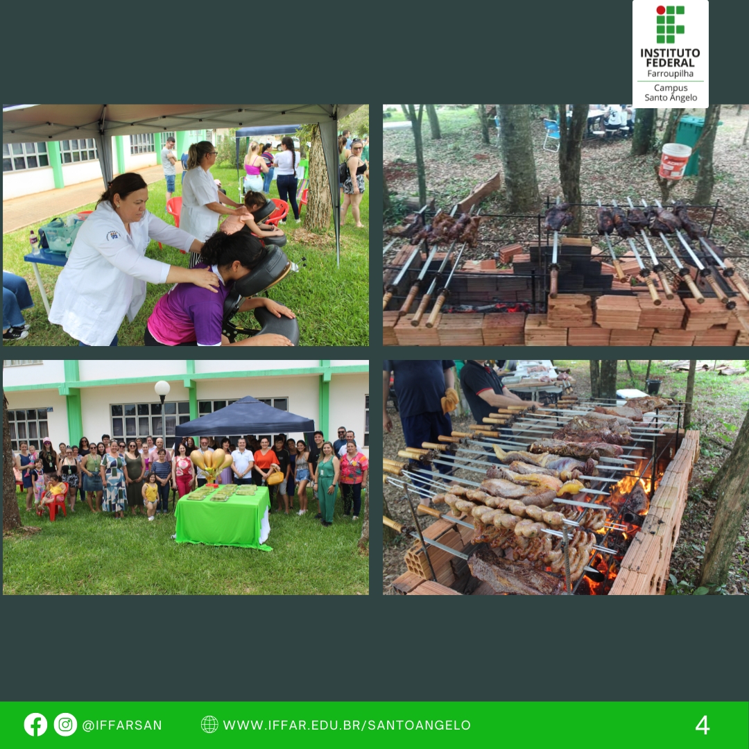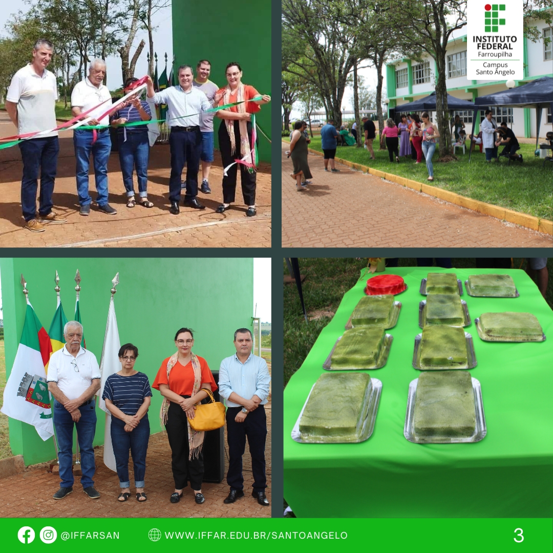 Aos participantes foi servido um bolo em comemoração ao aniversário do Campus e durante o evento teve mateada e seção de quick massagem (alunas do curso estética e cosmética) e verificação de pressão arterial (alunas(as) do curso técnico em enfermagem).