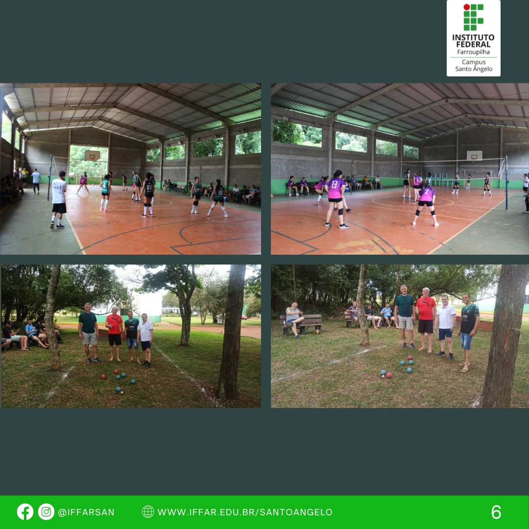 Durante toda a manhã, desenvolveu-se atividades esportivas de integração com o Campus de São Vicente do Sul, como: jogos de futebol (masc.) entre alunos dos cursos integrados e entre servidores dos Campi. Além destes, aconteceram jogos de voleibol feminino e recreativos para a comunidade (vôlei de praia, bocha).