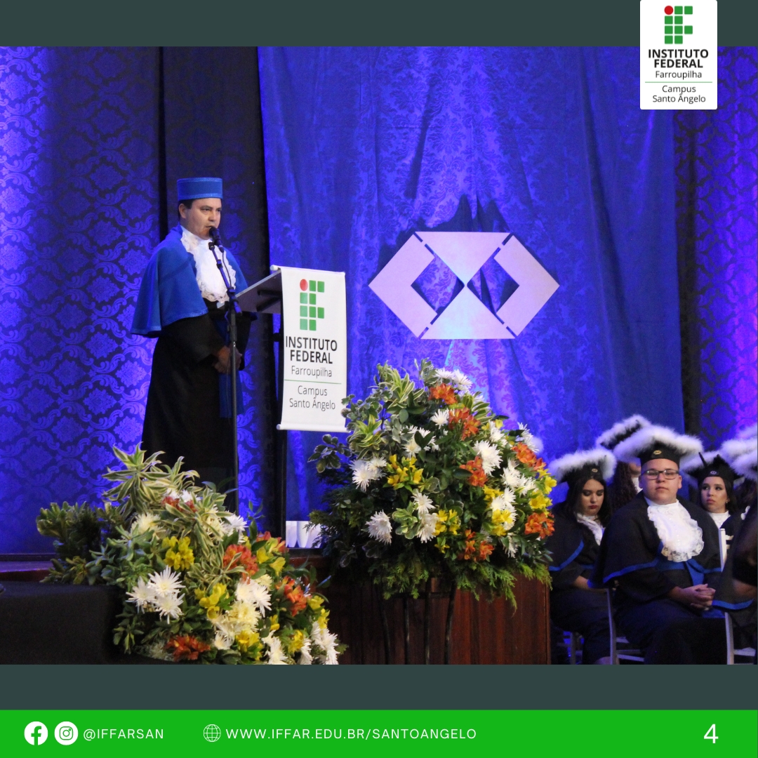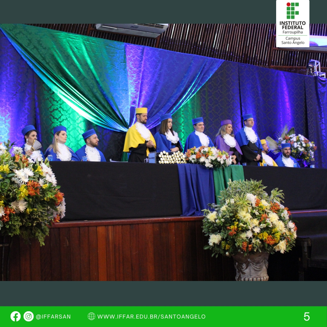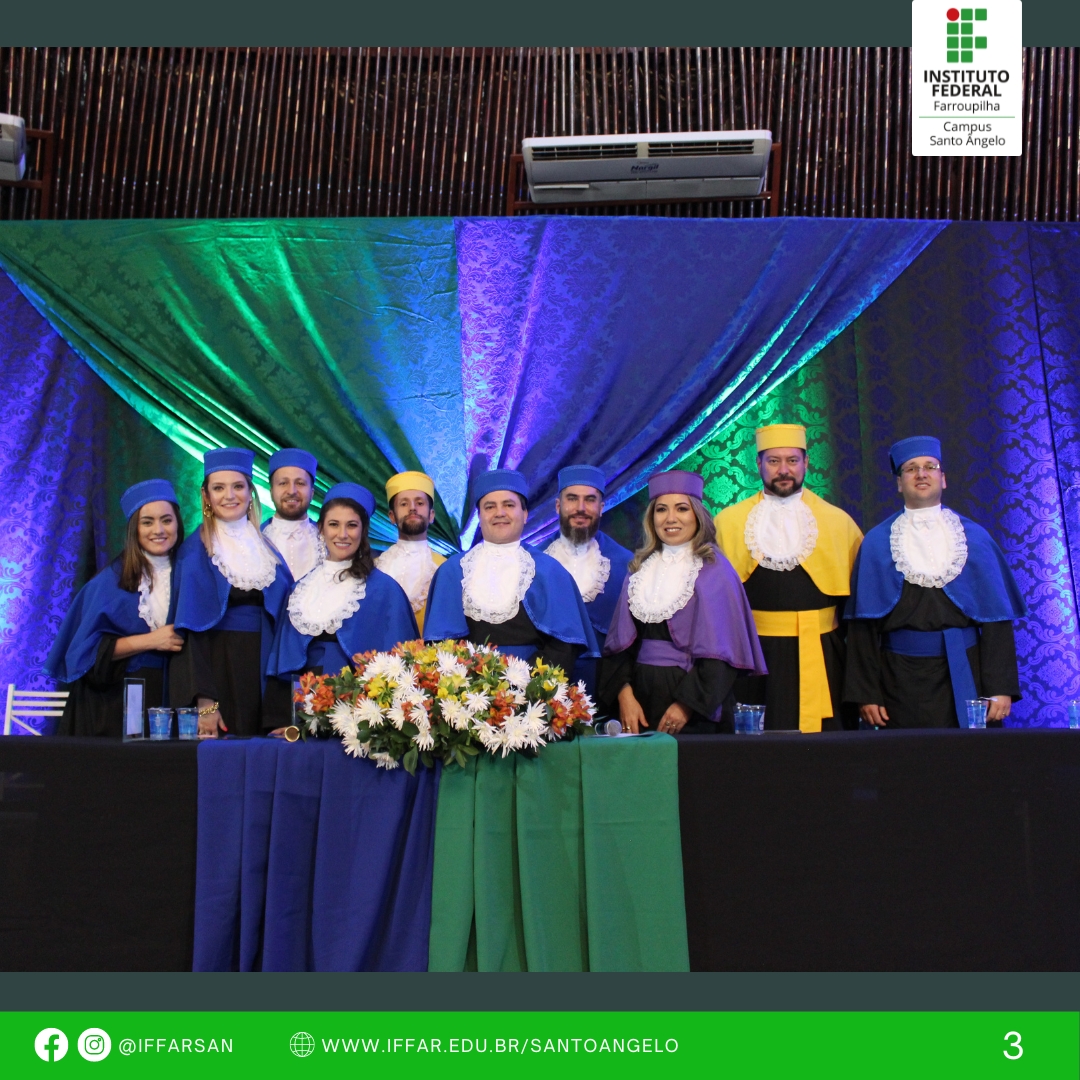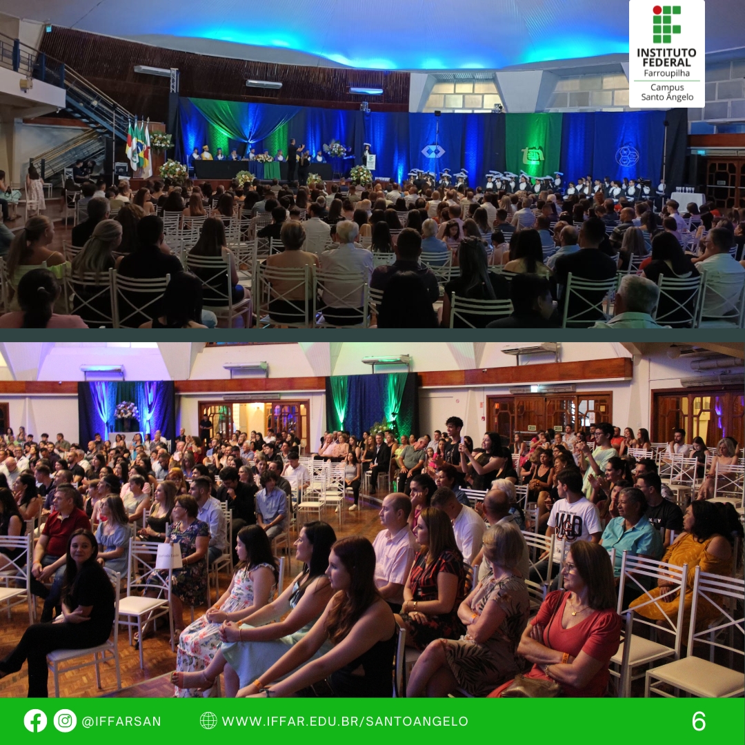 O evento aconteceu de forma presencial no salão de festas do Clube Gaúcho, contando com a presença da equipe diretiva, coordenações de cursos e servidores do Campus Santo Ângelo, bem como pais e familiares dos formandos.