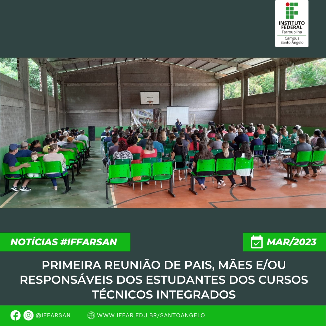 No último sábado, 04 de março de 2023, o Instituto Federal Farroupilha campus Santo Ângelo realizou a primeira reunião de pais, mães e ou responsáveis dos estudantes dos cursos técnicos integrados em Administração, Agricultura, Informática e Manutenção e Suporte em Informática.