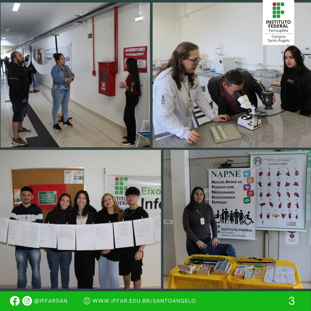 Foi um dia muito produtivo, onde os setores do ensino, coordenadores de cursos e docentes realizaram atendimento individualizado aos pais, mães e/ou responsáveis de estudantes dos cursos técnicos integrados. Houve apresentação dos Núcleos do IFFar, exposição de arte, projetos de ensino e extensão, visitas guiadas aos Laboratórios de Ensino, Pesquisa, Extensão e Produção (LEPEPs) e também ao Laboratório IF Maker. A comunidade acadêmica também teve a oportunidade de realizar cuidados de saúde promovidos pelos cursos Técnico em Enfermagem e Superior em Estética e Cosmética, além de prestigiar inúmeras apresentações artísticas de servidores e estudantes que abrilhantaram o evento.