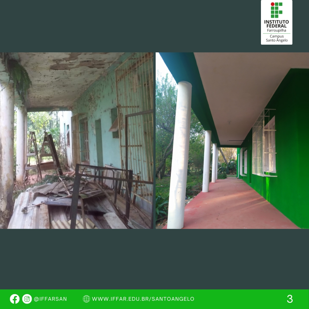 Na primeira quinzena do mês de agosto de 2021, foi concluída e entregue à Comunidade Acadêmica do IFFar - Campus Santo Ângelo a obra de reforma do “Casarão”, como é carinhosamente chamado o prédio que abrigava a sede do Centro de Atividades Agrícolas da Cooperativa Tritícola Regional Santo Ângelo (COTRISA), quando esta utilizava parte da área em que hoje encontra-se o Campus do IFFar de Santo Ângelo.