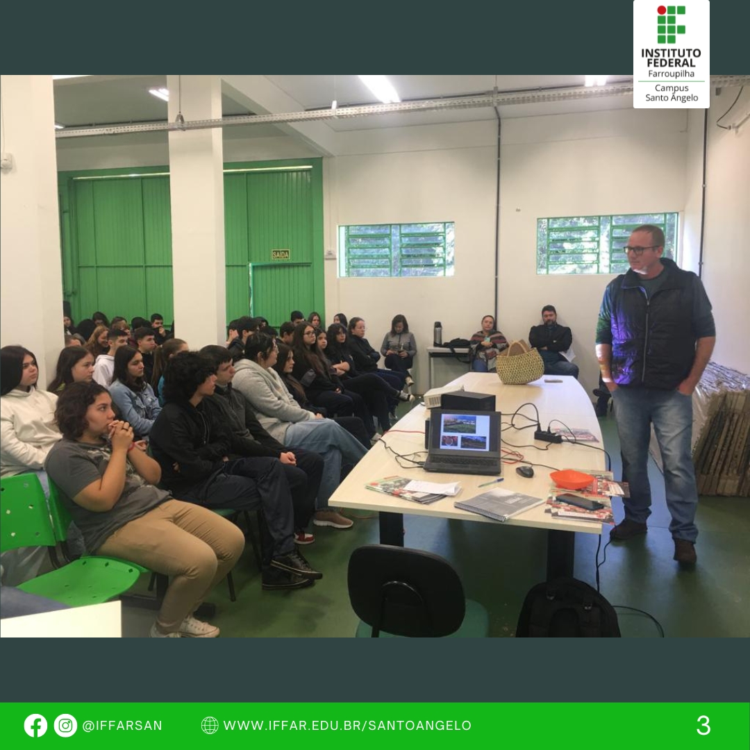 Na manhã de quinta, 1º/6, foi desenvolvida, em parceria entre o Núcleo de Estudos Afro-brasileiros e Indígenas (NEABI) e o Núcleo de Gestão Ambiental (NUGEA), uma atividade com os alunos dos 1ºs e 2ºs anos dos cursos Técnicos do IFFar San, cuja temática foi: "A Fome no Brasil: Desafios e Perspectivas".