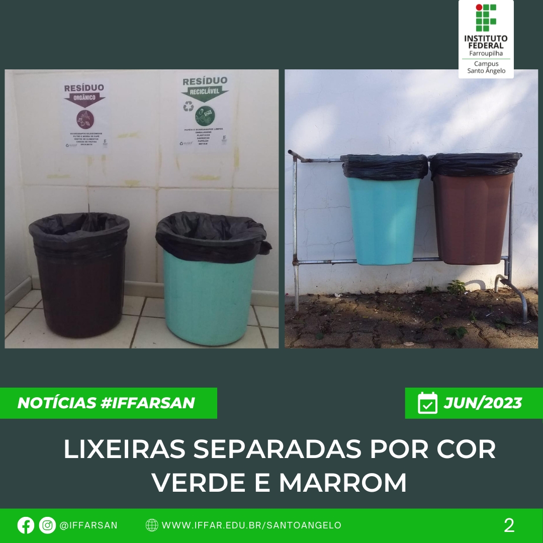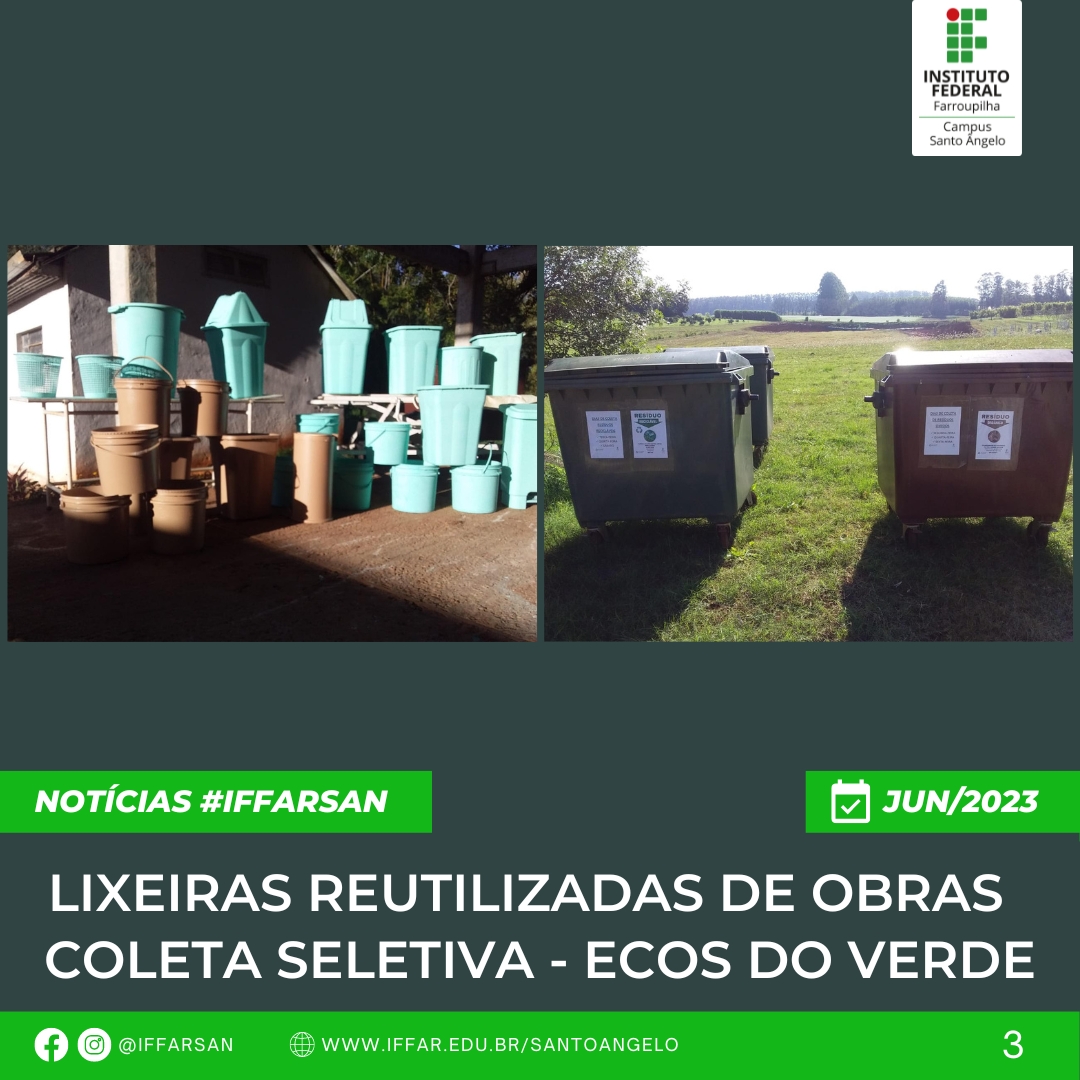 Assim, dentro desta temática, o Campus Santo Ângelo através do NUGEA, Servidores, NEABI, Direções do Campus e Grêmio Estudantil estão efetivando nesse ano a COLETA SELETIVA DE RESÍDUOS SÓLIDOS, desde a separação nos espaços do IFFar até o destino final.