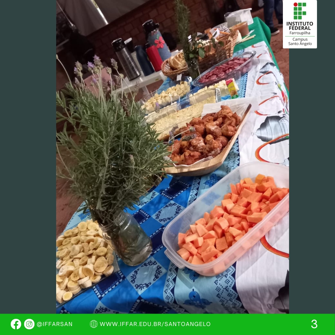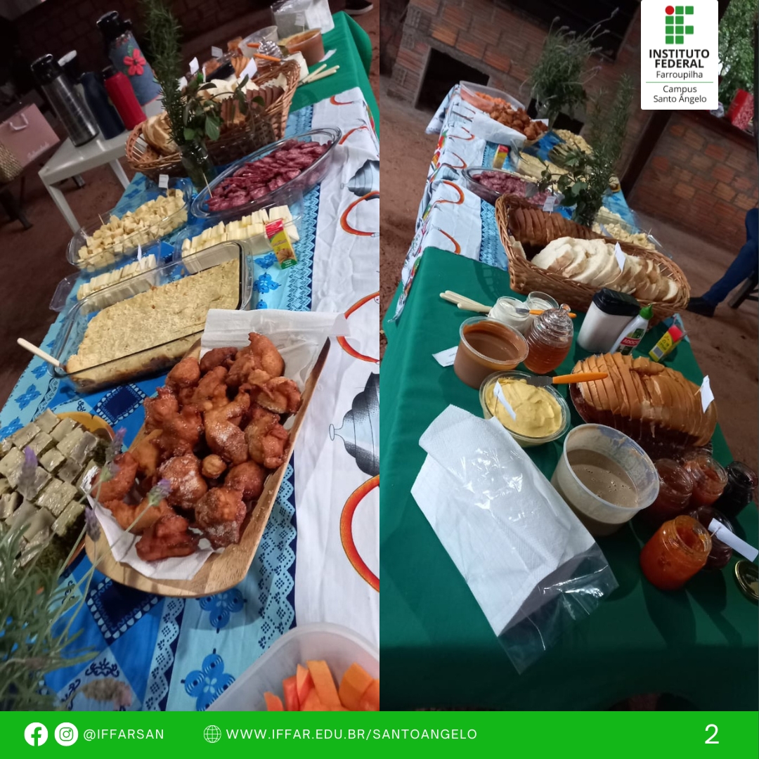 Os produtos consumidos no Café foram todos adquiridos das famílias dos alunos do campus, como pães, geleias, queijos, nata e também na Feira da Agricultura Familiar de Santo Ângelo.