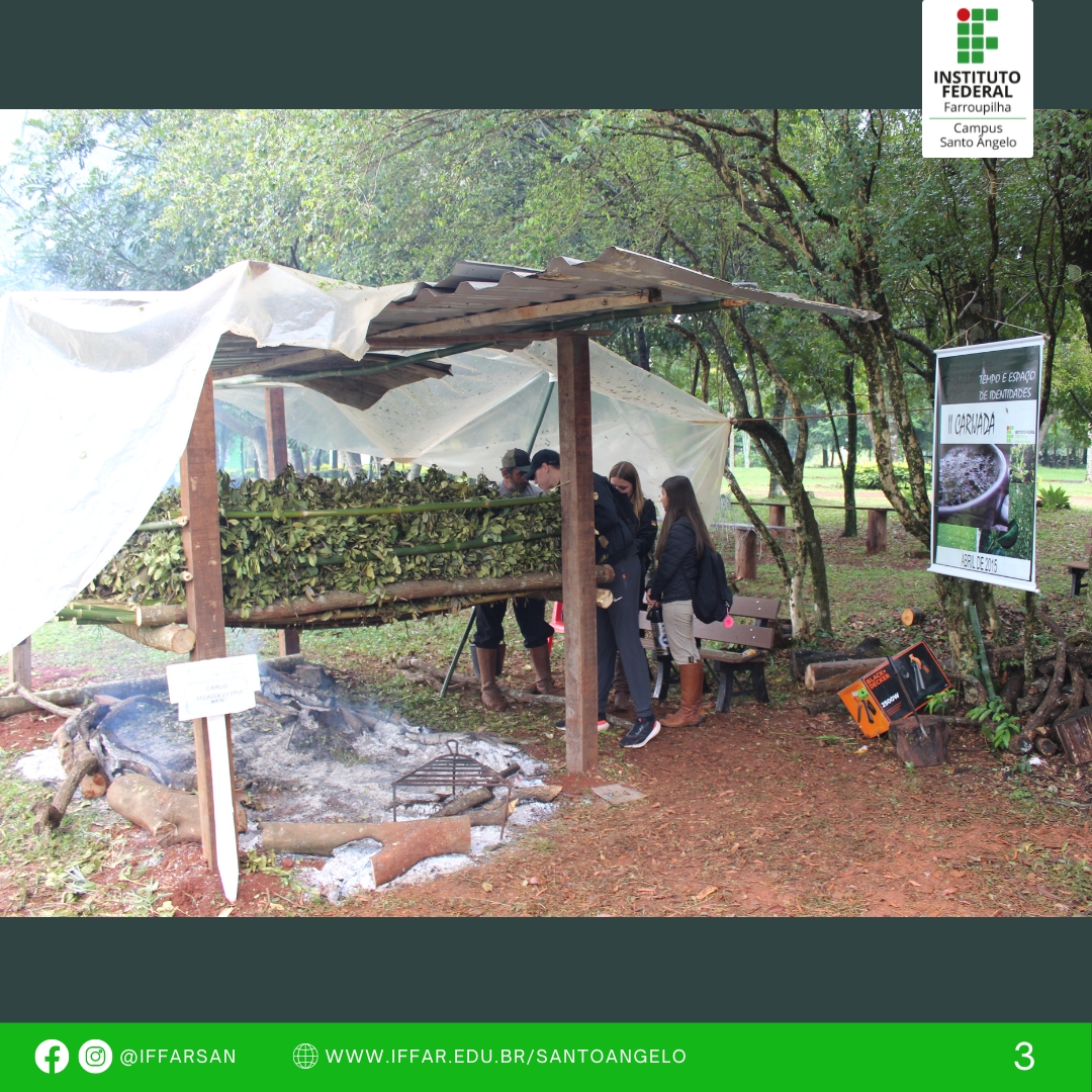 Nos dias 31/08 e 01/09 aconteceu a IX Carijada no IFFar San. Este projeto de Extensão, que acontece desde 2014, em parceria com a Universidade Federal da Fronteira Sul, busca reviver a prática ancestral de produção artesanal de erva-mate pelo método de carijo.