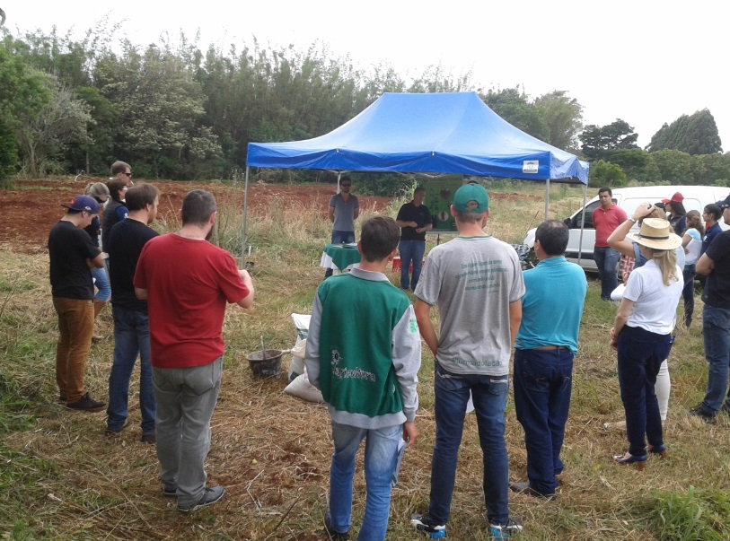 Participaram do dia de campo em torno de 80 pessoas. O público constou principalmente de estudantes (alunos do Curso Técnico em Agricultura do IFFAR, alunos da Agronomia da URI e alunos do 9º ano da EMEF José Alcebíades de Oliveira), pais de alunos, professores da URI, servidores do IFFAR e comunidade em geral. O Dia de Campo foi realizado como atividade relacionada a Ações de Extensão coordenadas pelos servidores Medianeira Weyh, Luis Loose e Valdair Jacques, nos quais participaram os bolsistas Jaqueline Geist, Vanessa Palinski e Arthur Benetti, alunos do Curso Técnico em Agricultura. Os parceiros das atividades do Dia de Campo foram: Viveiros Weber, EMATER, Colégio Politécnico da UFSM e Agrícola Felden.